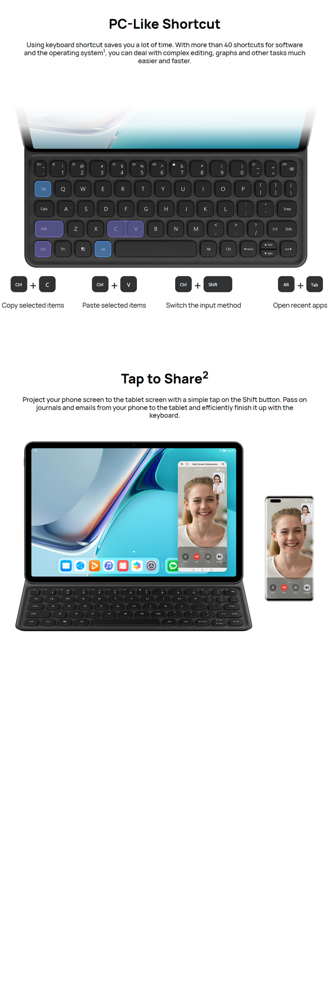 Huawei Smart Magnetic Keyboard C-Debussy-Keyboard / C-GOETHE-KEYBOARD | Magic in The Magnets | Dual Angle Stand | All Around Protection |