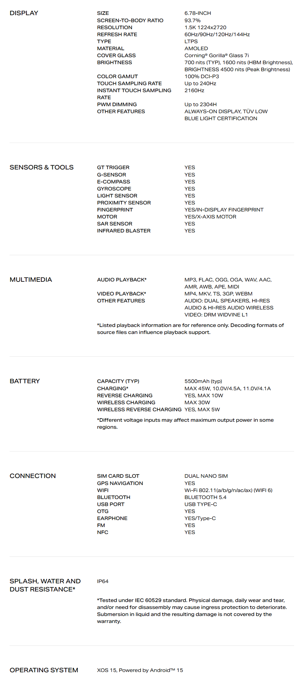 ▪ Battery Capacity(mAh): Li-Po 5500mAh, 45W fast charge