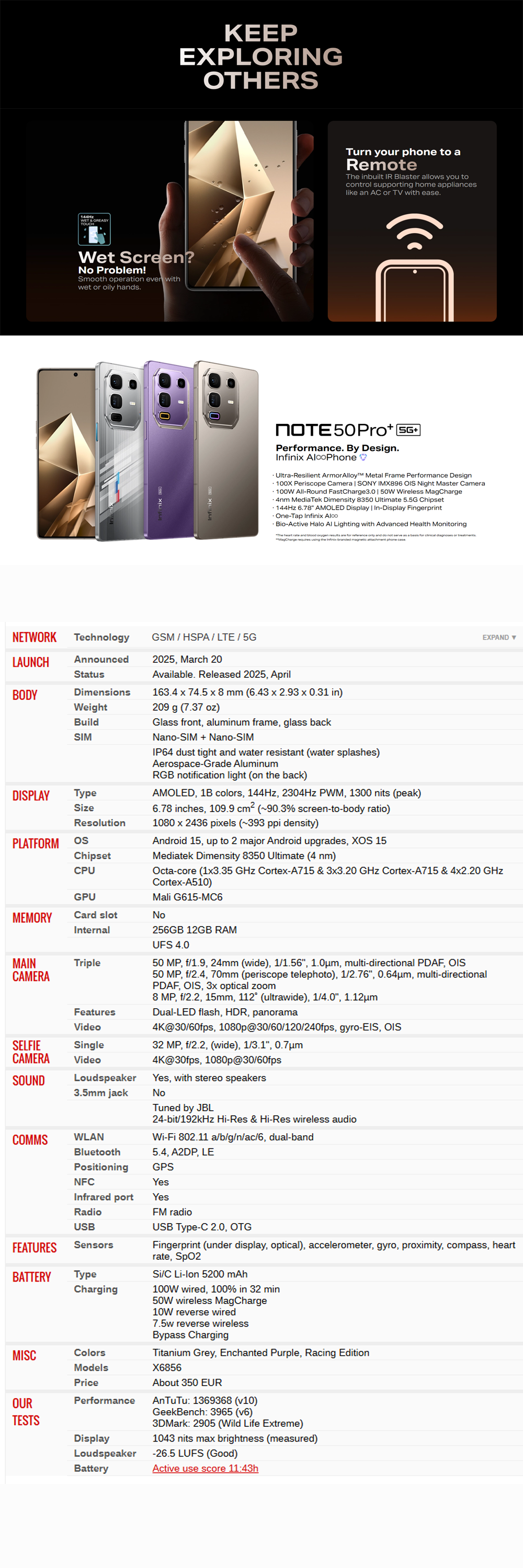 Infinix NOTE 50 Pro+ 5G | 100X Periscope Camera | MediaTek D8350 Ultimate 5.5G | 100W All-Round FastCharge3.0 | 144Hz 6.78" AMOLED