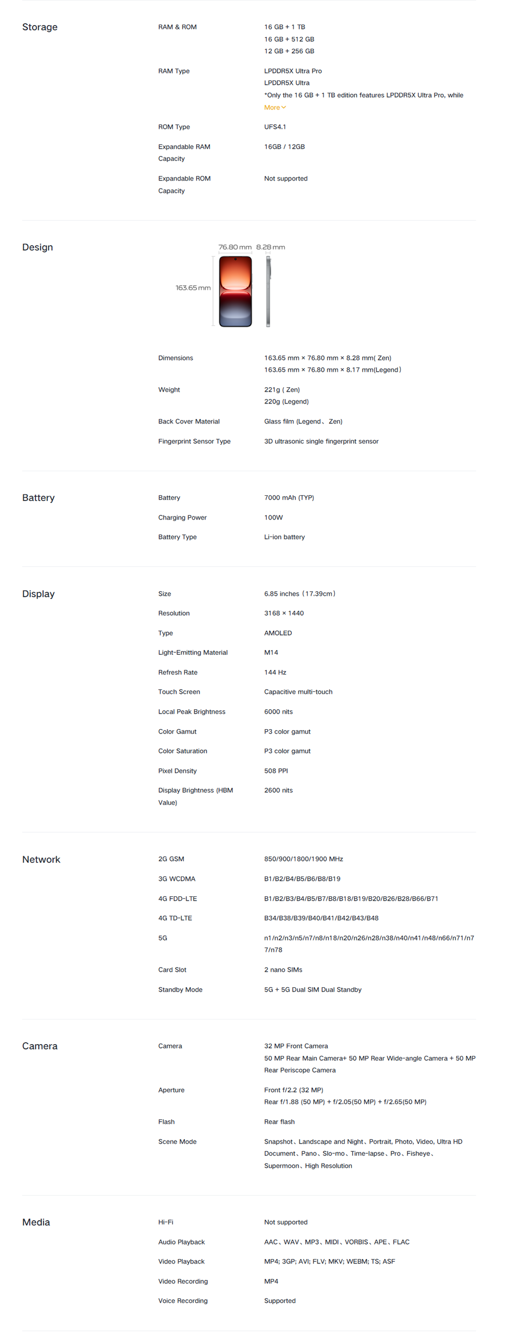 • Screen Size(inch): 6.85 inches, LTPO AMOLED, 1B colors, 144Hz