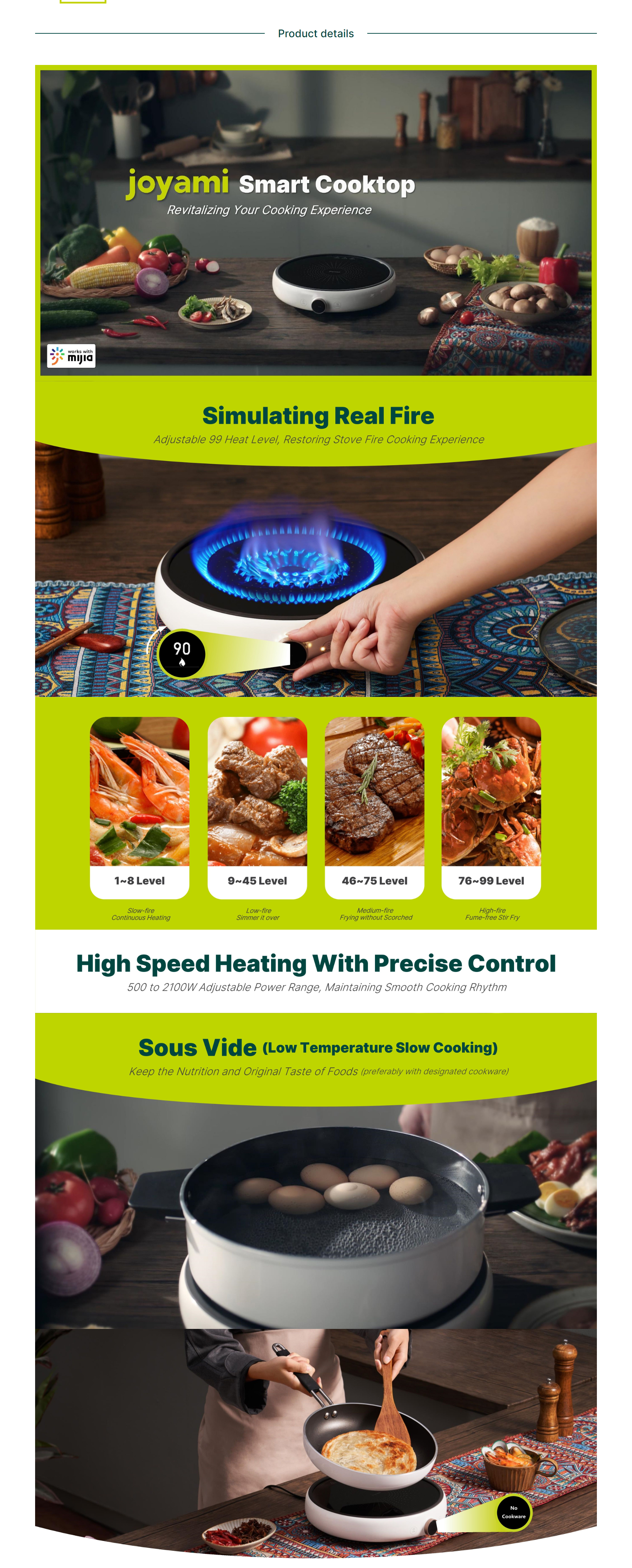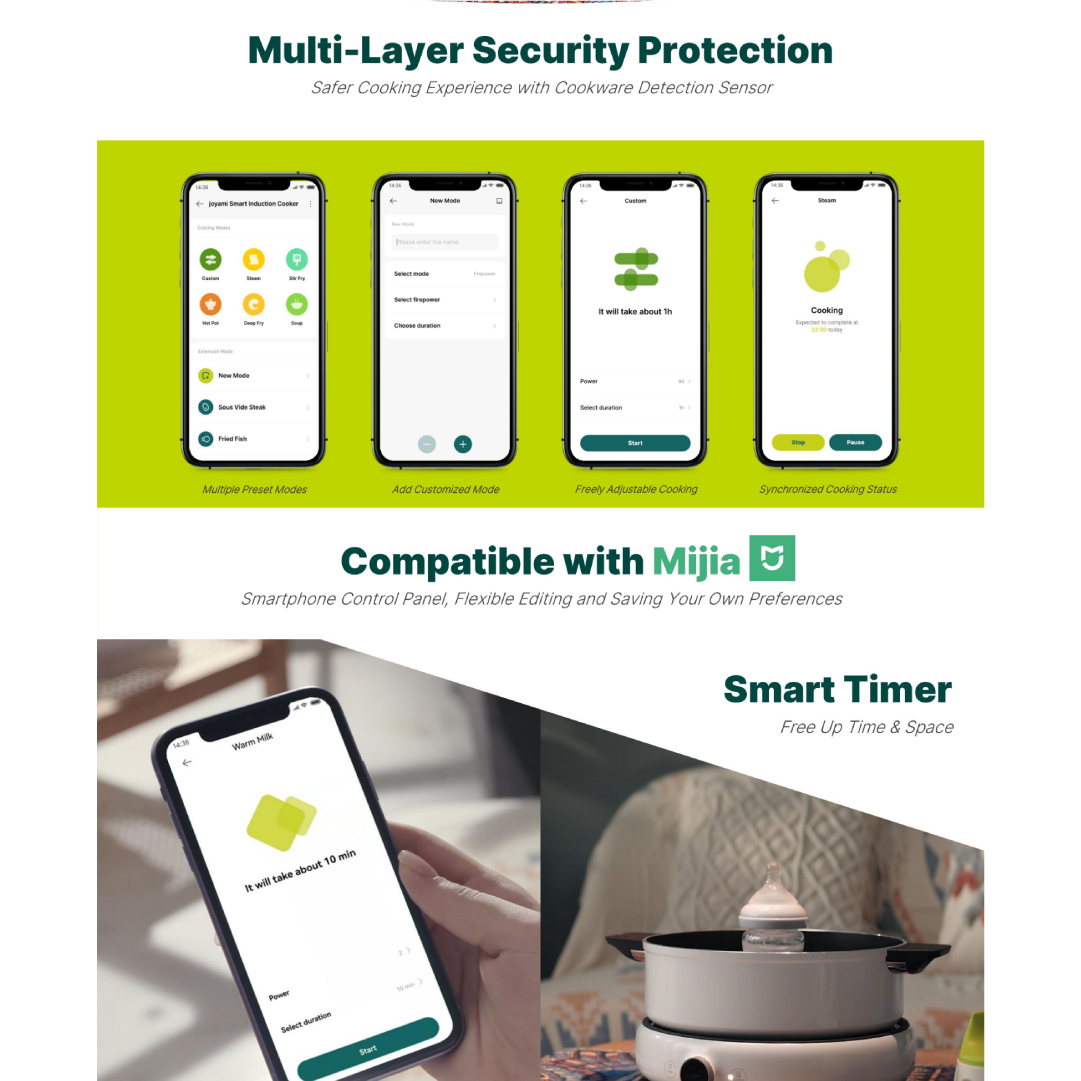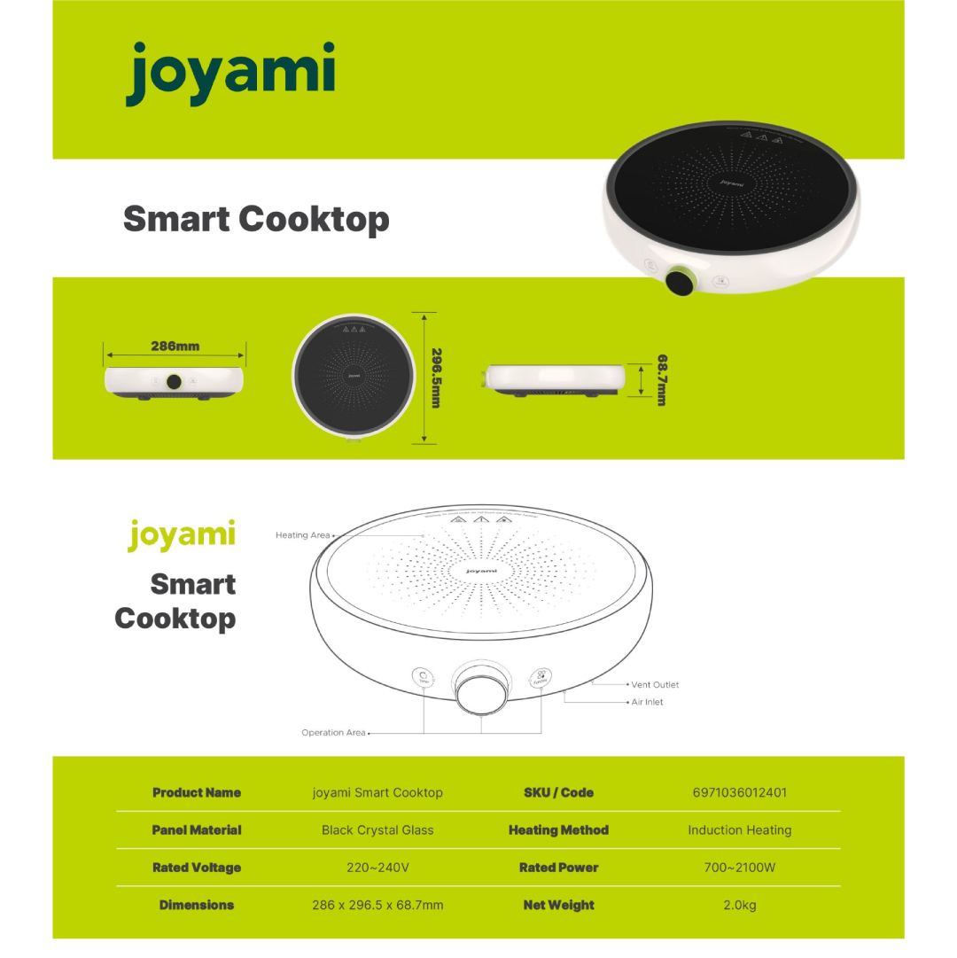 Joyami 2100W Smart Induction Cooktop | 99 Heat Level | Multiple Cooking Function | Smart Timer | Sous Vide Low Temperature Cooking | Compatible with Mijia App | Multi-Layer Security Protection | Induction Cooker with 2 Years Warranty