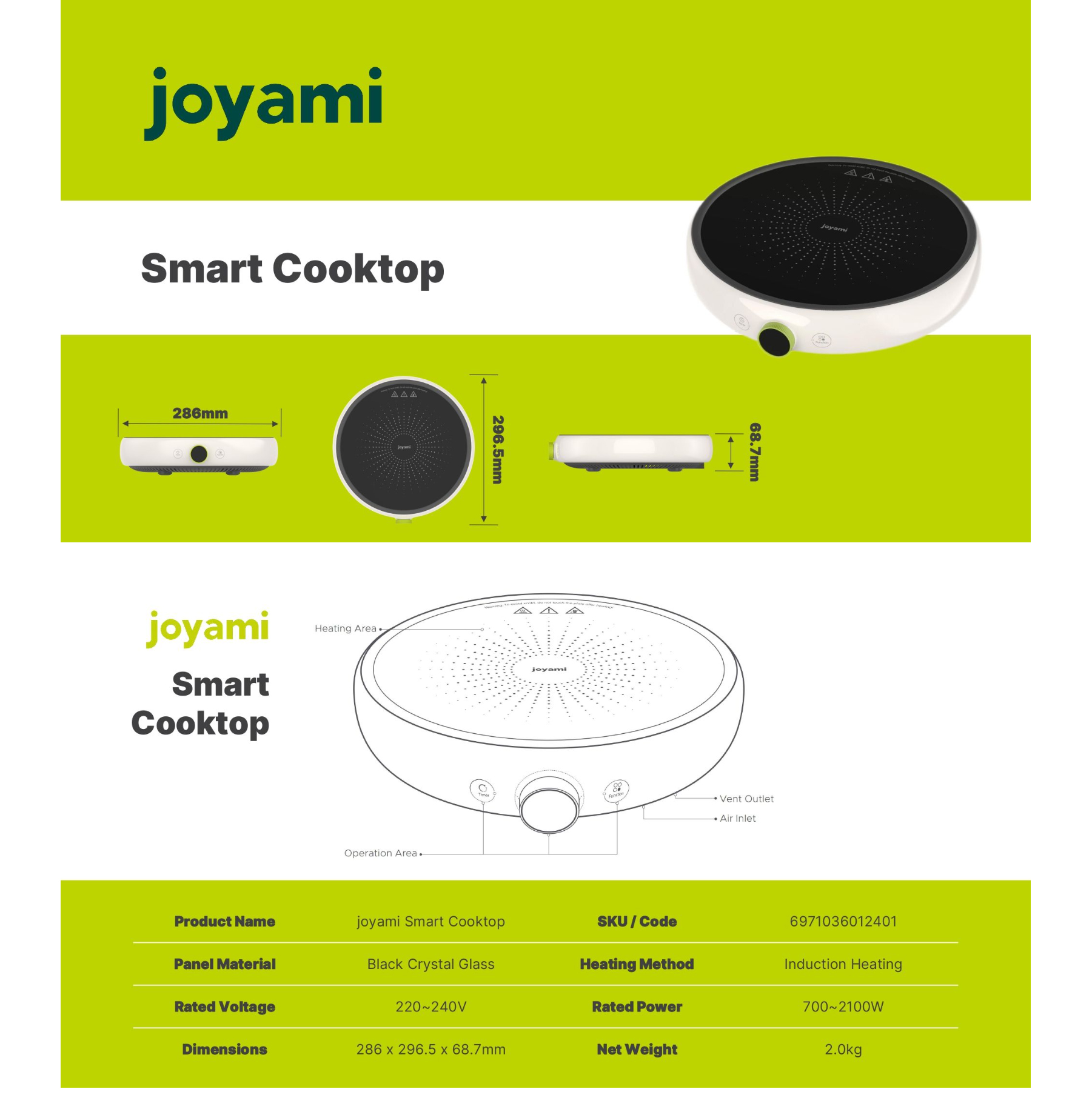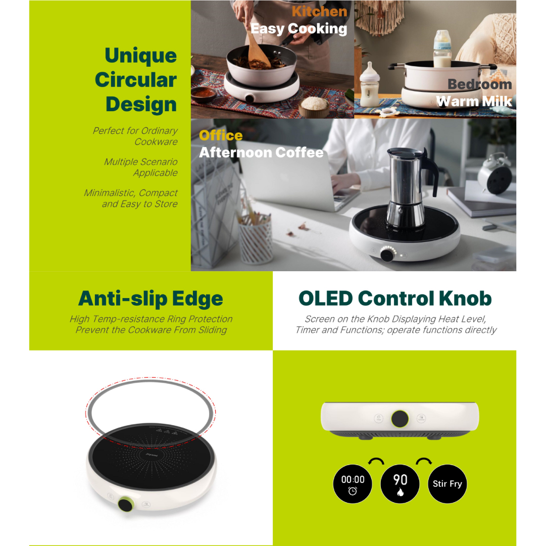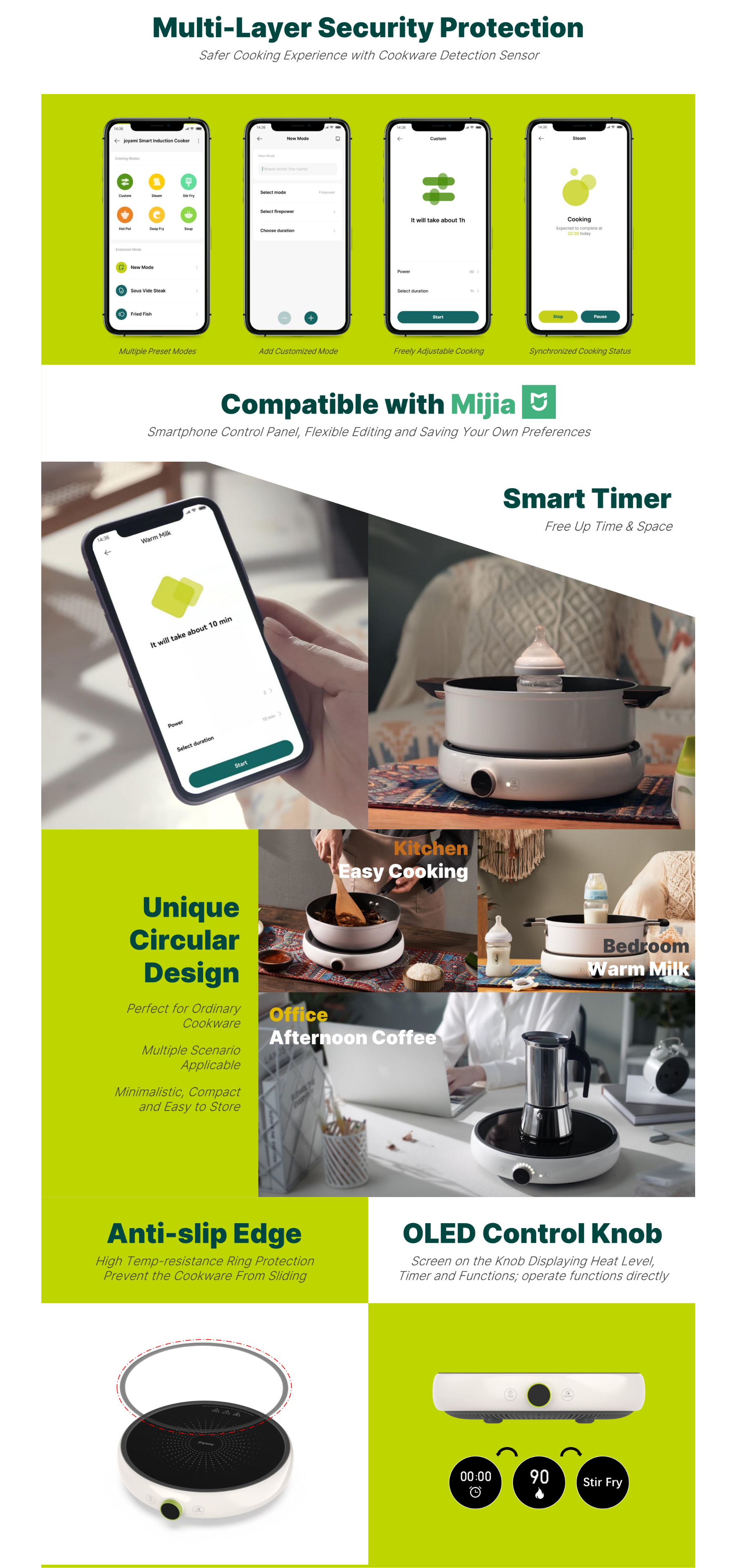 Joyami 2100W Smart Induction Cooktop | 99 Heat Level | Multiple Cooking Function | Smart Timer | Sous Vide Low Temperature Cooking | Compatible with Mijia App | Multi-Layer Security Protection | Induction Cooker with 2 Years Warranty