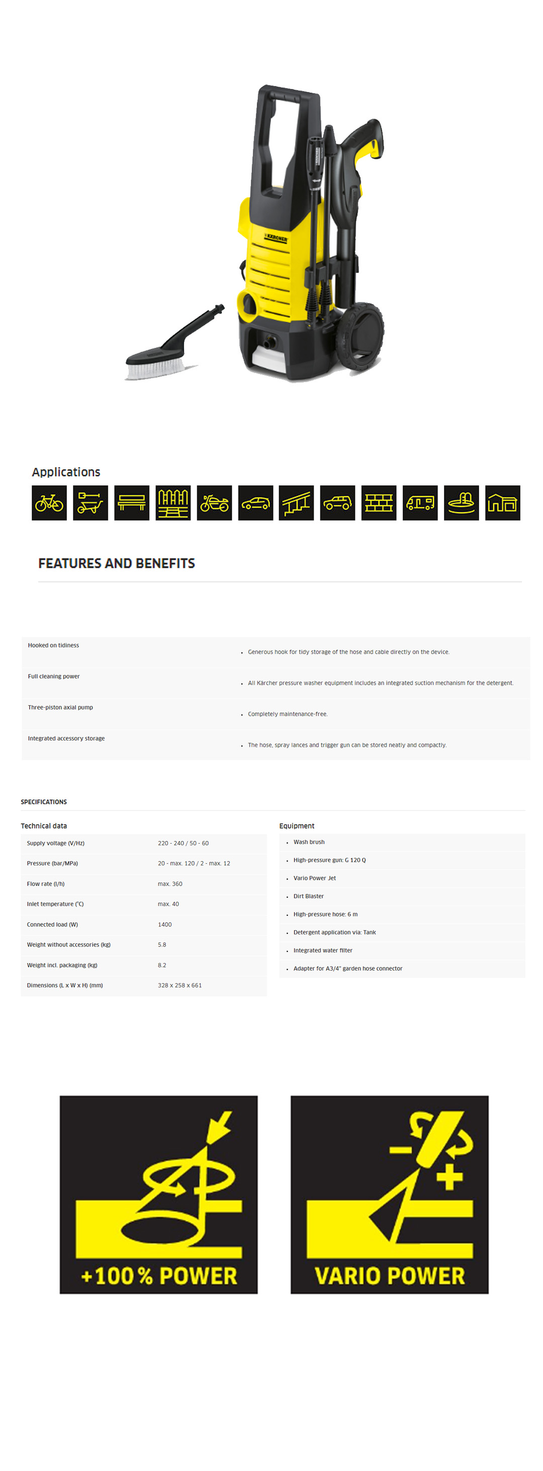 Karcher 120 Bar Pressure Washer K 2.360 | High-Pressure Gun | Full Cleaning Power | Vario Power Jet | Dirt Blaster