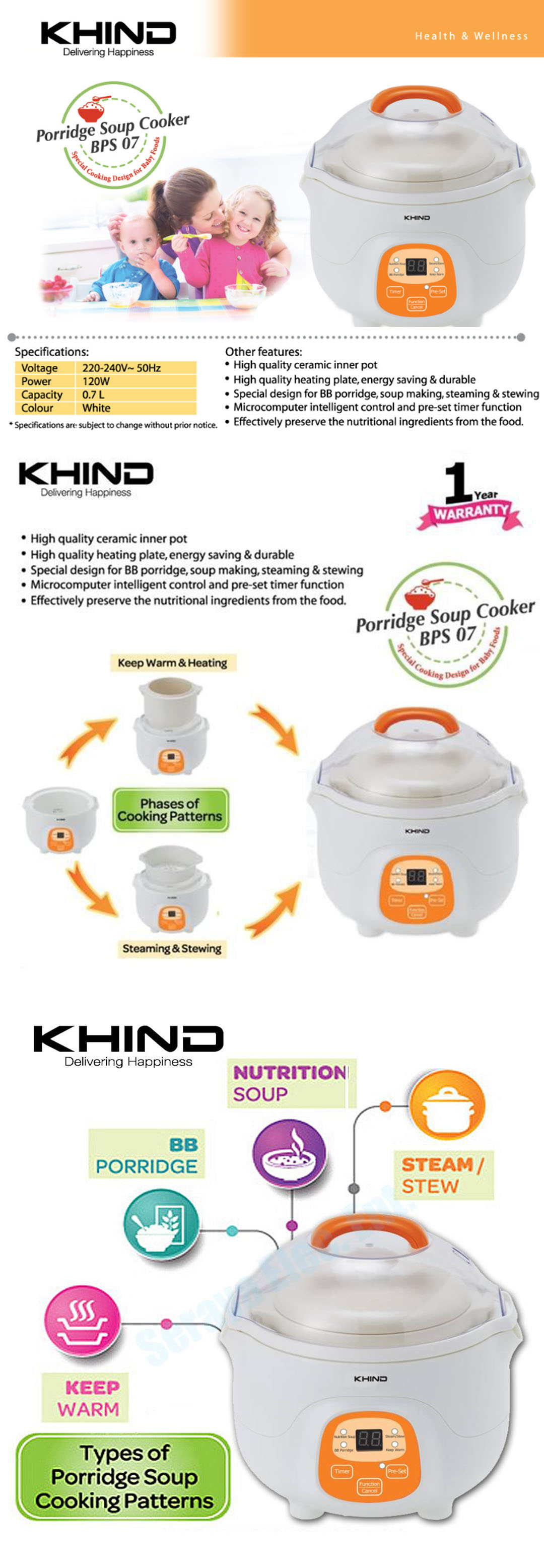 Special design for BB porridge, soup making, steaming & stewing