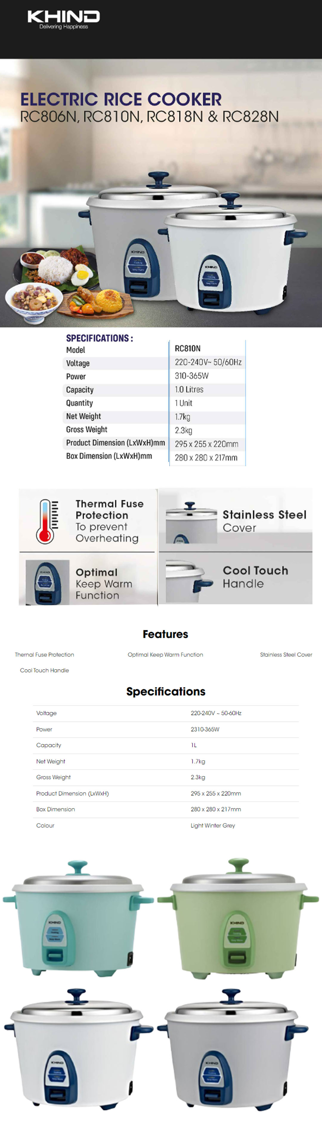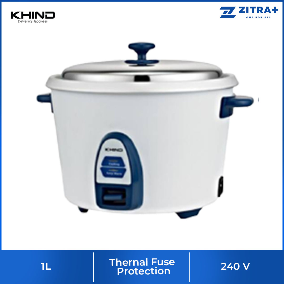 KHIND 1.0L Rice Cooker RC810N | Optimal Keep Warm Function | Thermal Fuse Protection to Prevent Overheating | Stainless Steel Cover | Rice Cooker with 2 Years Warranty