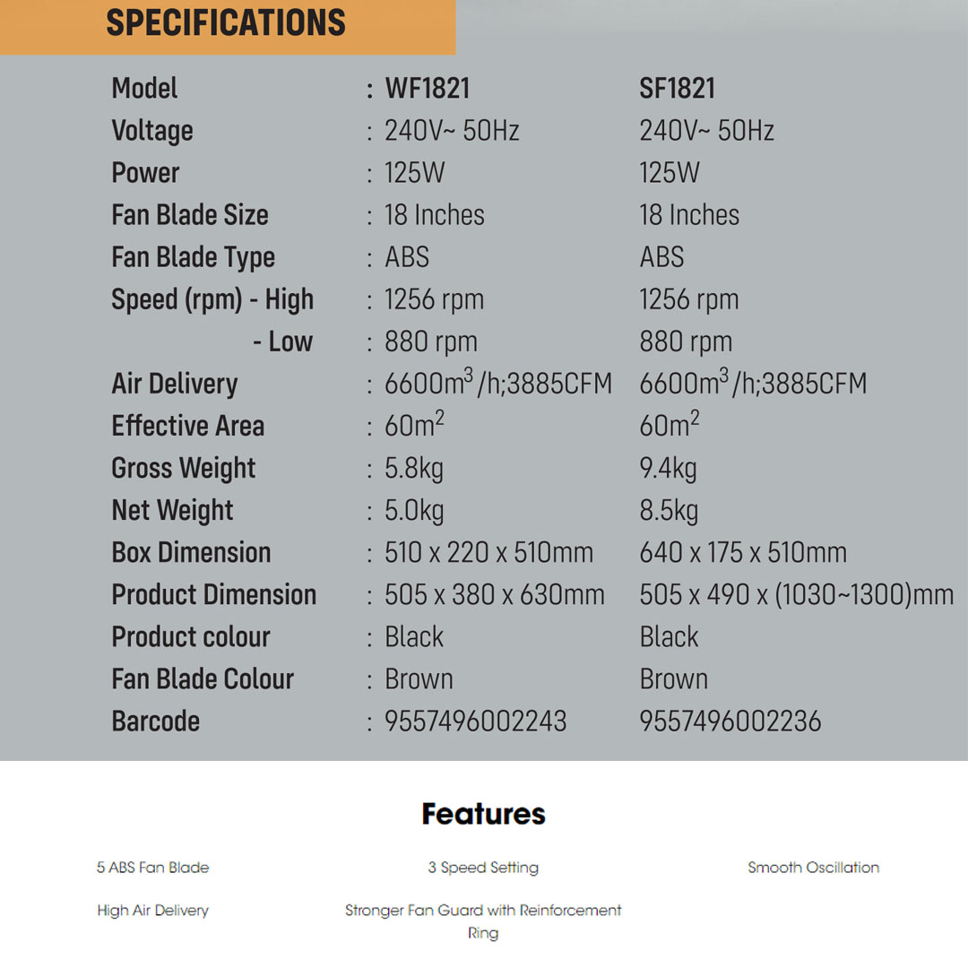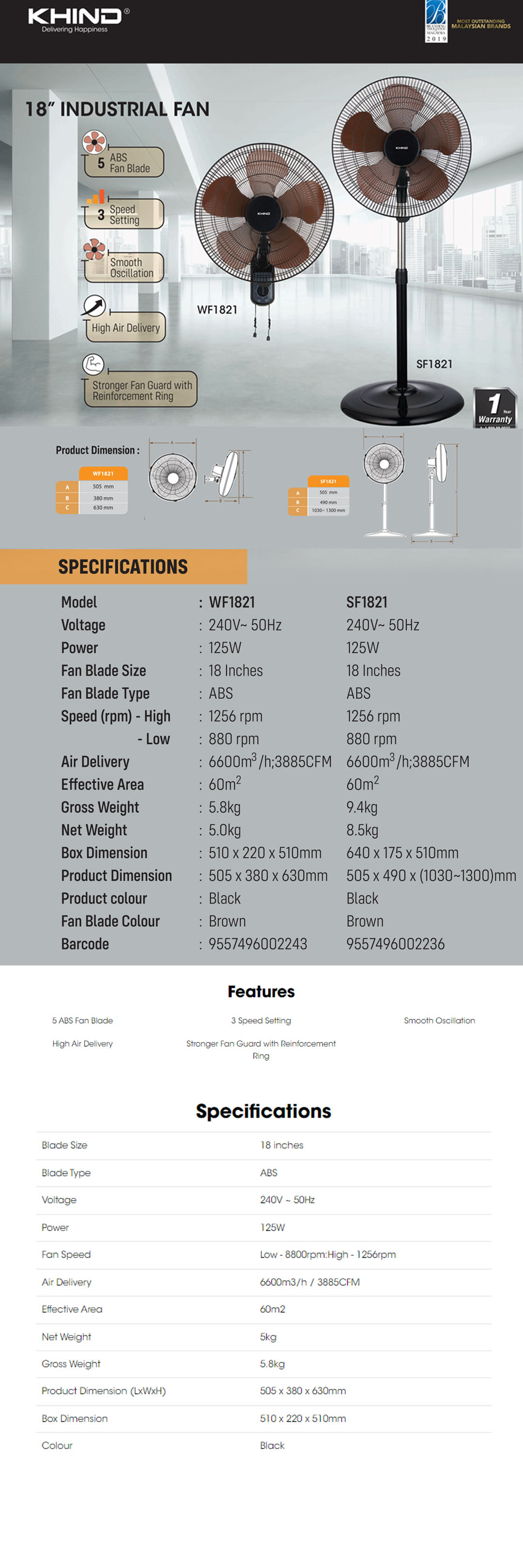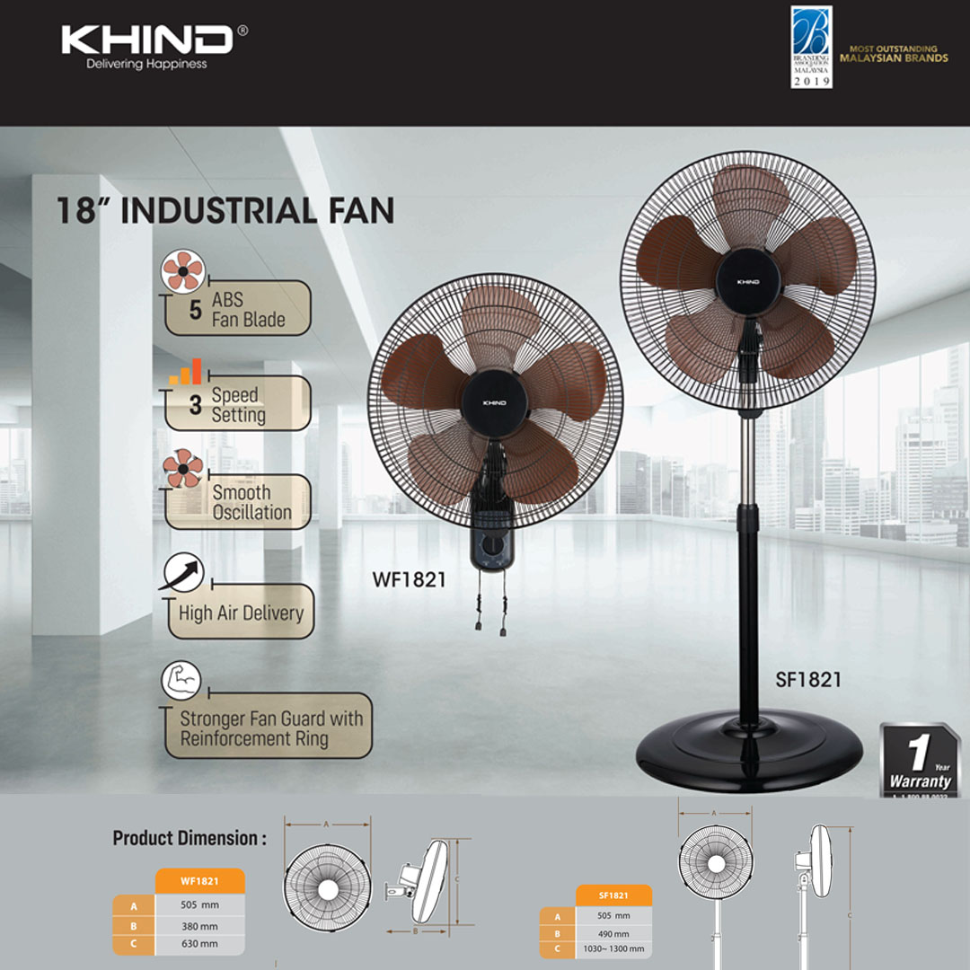 KHIND 18" Industrial Wall Fan WF1821 | 5 ABS Fan Blade | 3 Speed Setting | High Air Delivery | Stronger Fan Guard with Reinforcement Ring | Wall Fan with 1 Year Warranty