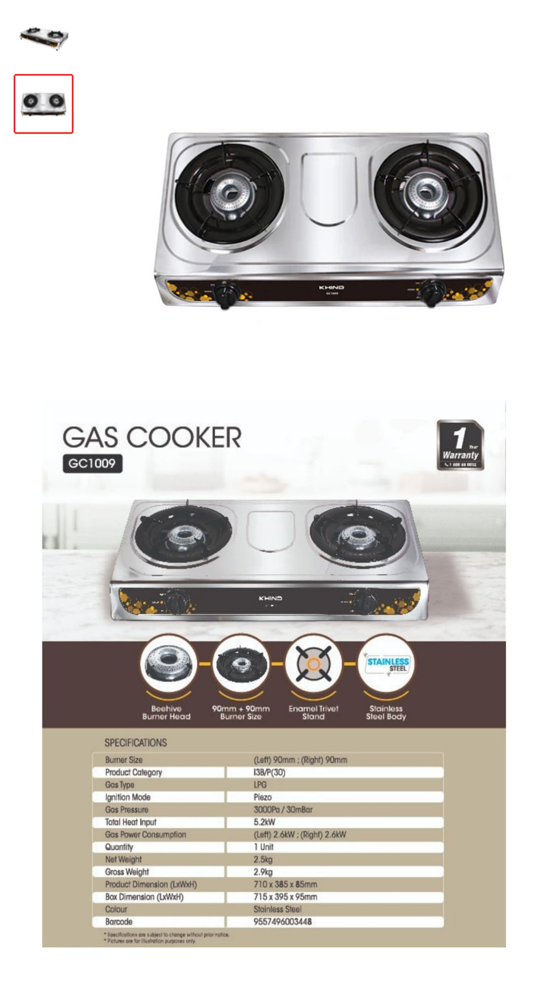 • Product Category I3B/P(30) • Double Burner Size 100mm • Gas Type LPG