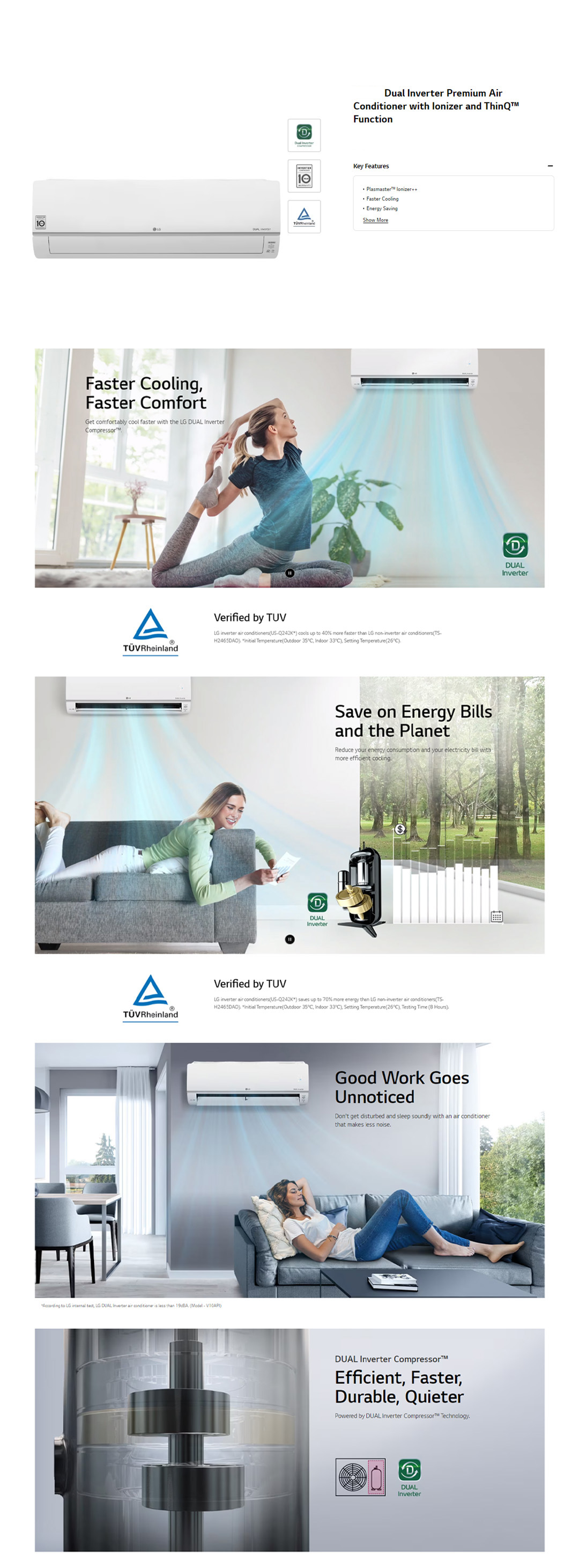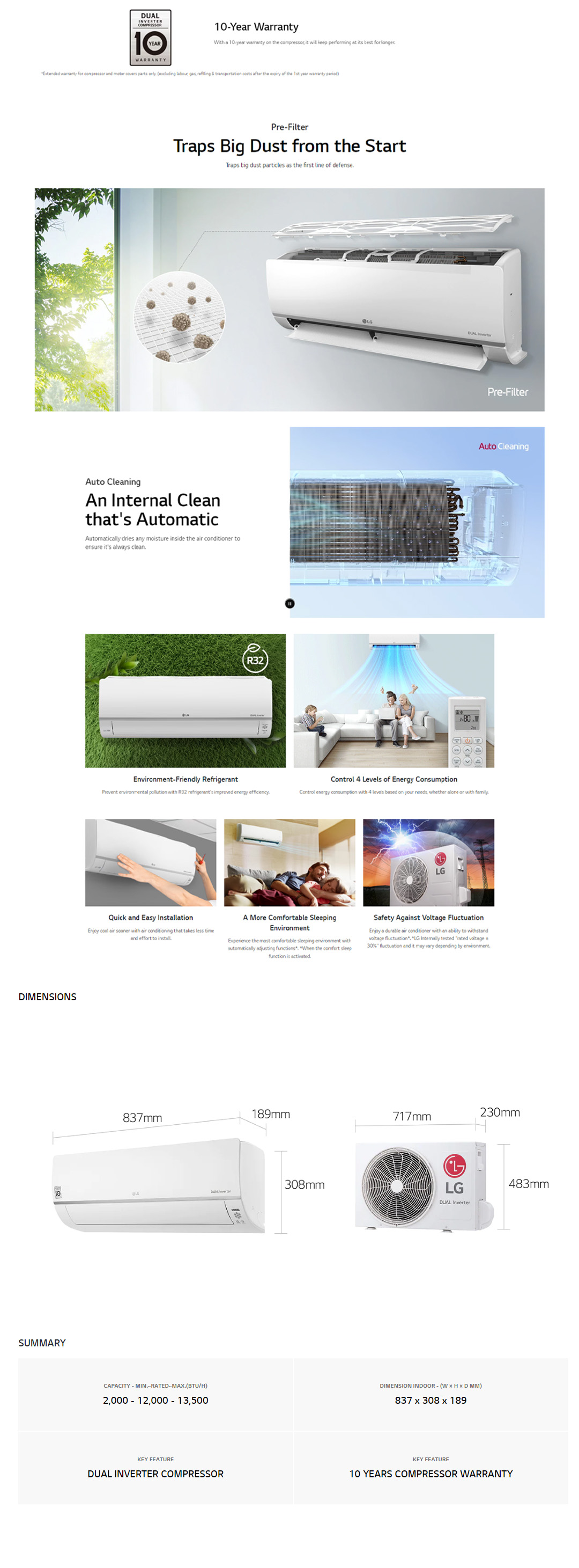• Faster Cooling • Energy Saving • DUAL Inverter Compressor: Efficient, Faster, Durable, Quieter • Auto-Cleaning • Pre-Filter: Traps Big Dust from the Start • Allergy Filter: Reduce Allergens for Healthier Air