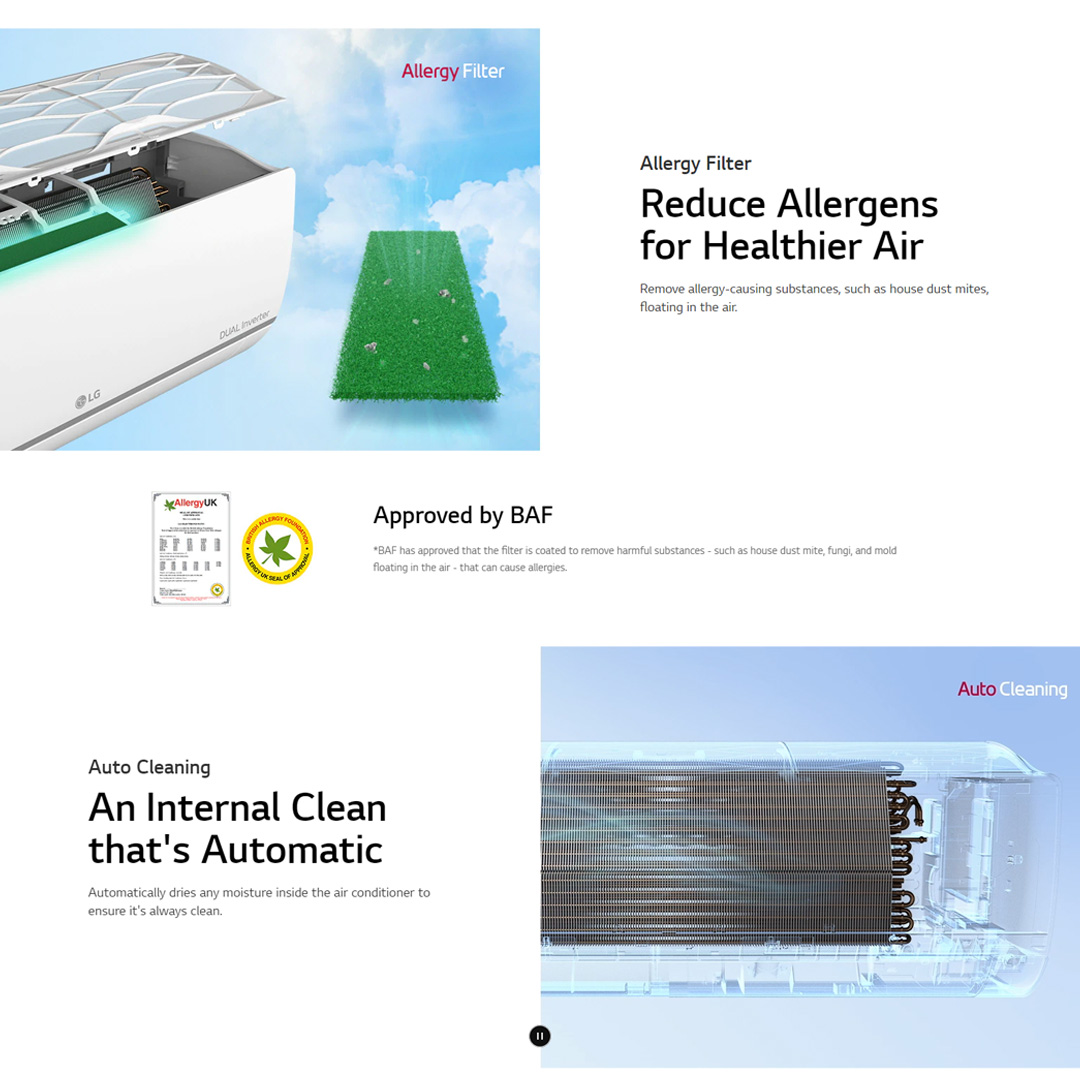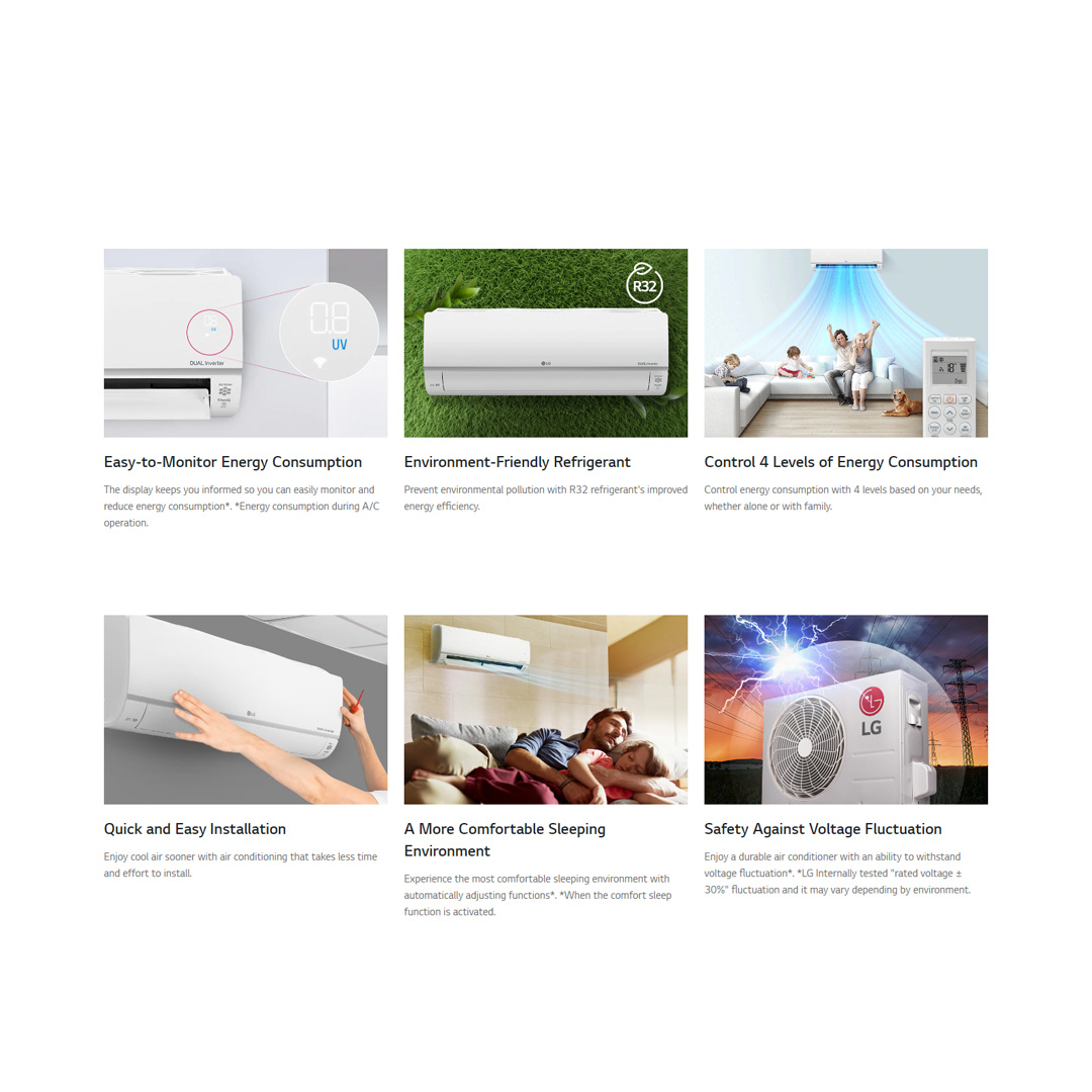 LG 1.5HP R32 Dual Inverter Deluxe Wall Mount Air Conditioner S3-Q12JA3WA | Self Diagnosis | Dehumidification | Sleep Mode | Smart Diagnosis | Auto Cleaning | Easy Control | Number Display | Air Conditioners with 1 Year Warranty