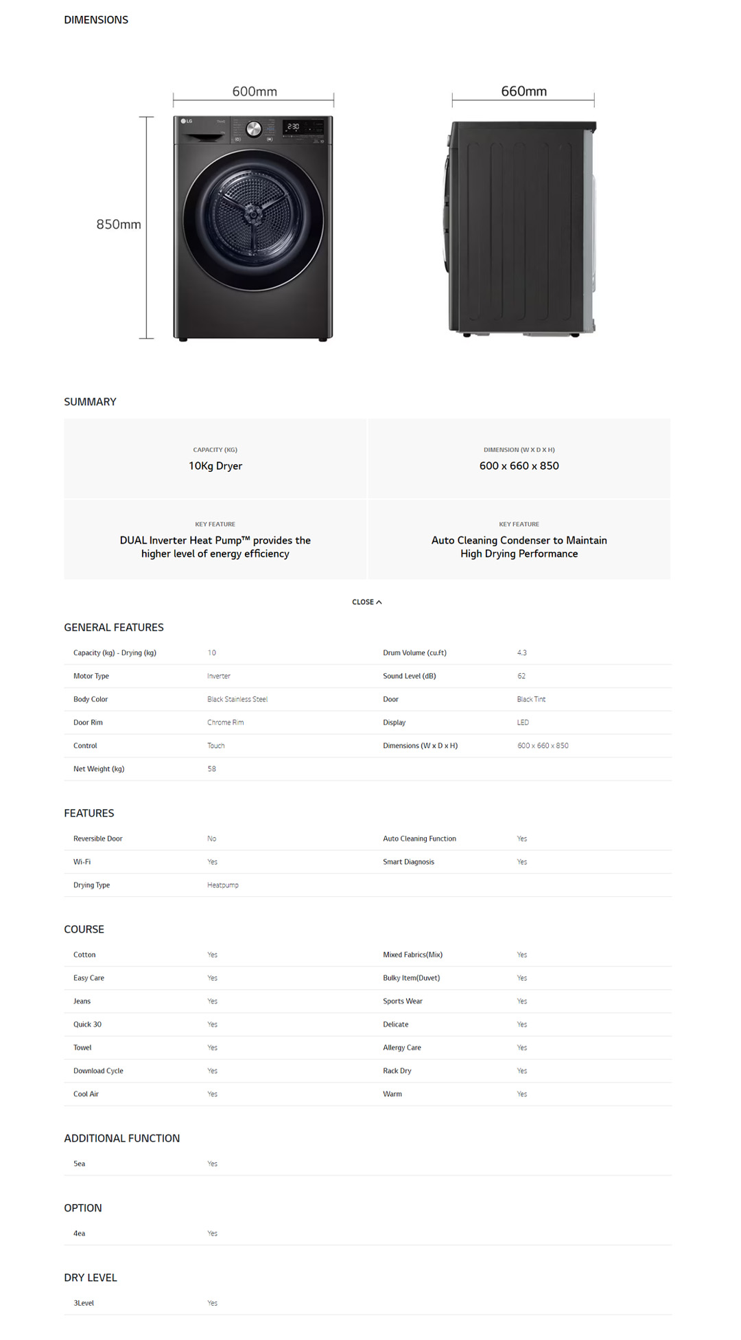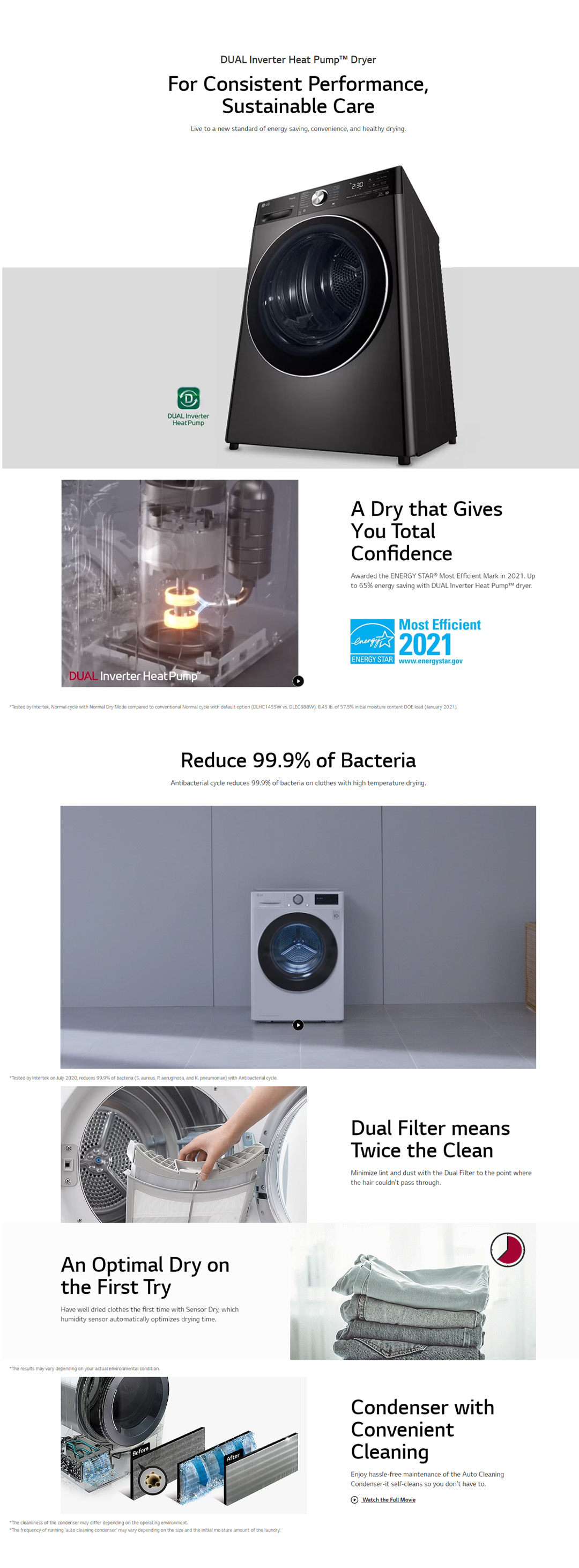 LG 10KG Front Load Heatpump Dryer with Dual Inverter and Auto Cleaning Condenser | RH10VHP2B / RH10VHP2W | Smart Pairing | Allergy Care | Dual Lint Filter | Heatpump Dryer with 1 Year Warranty