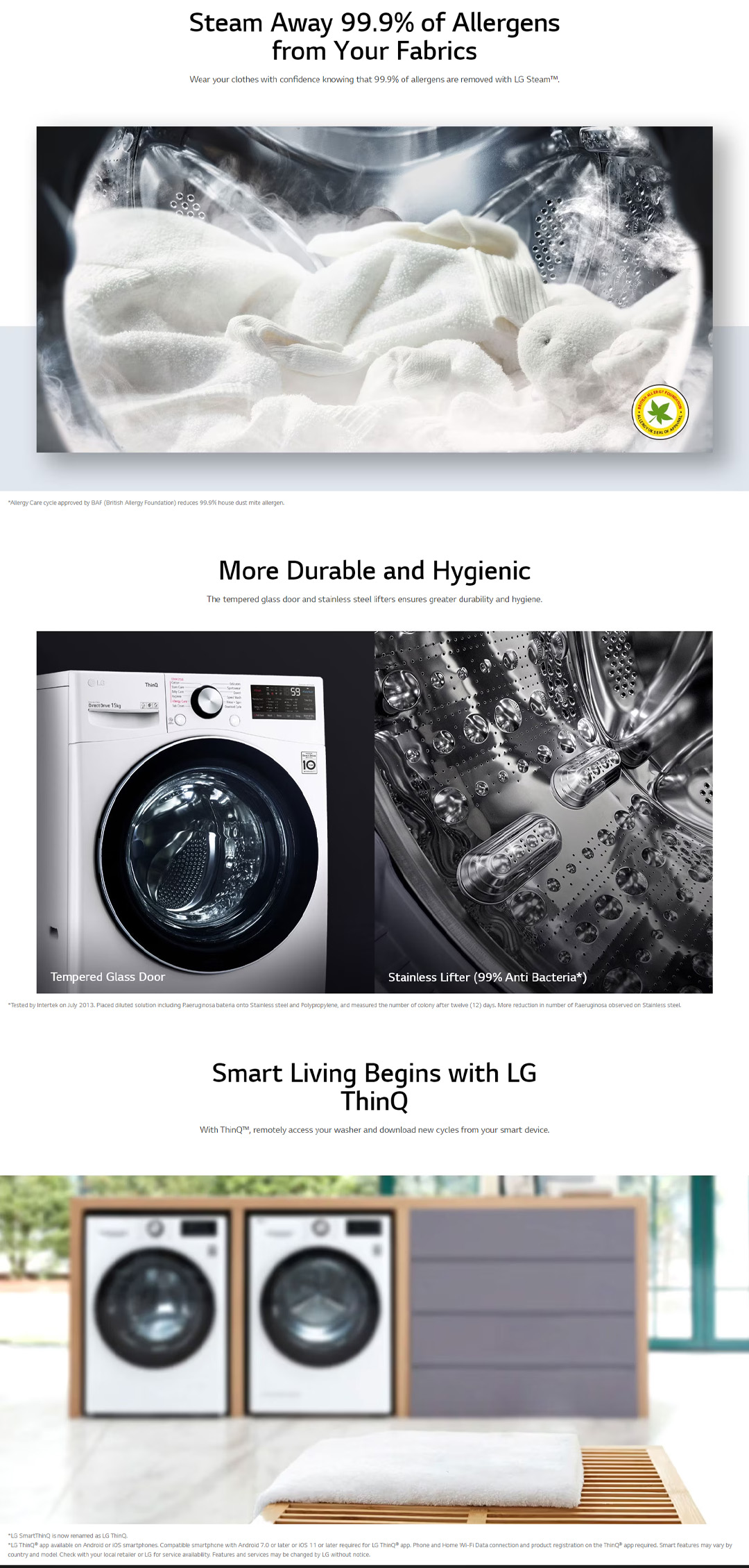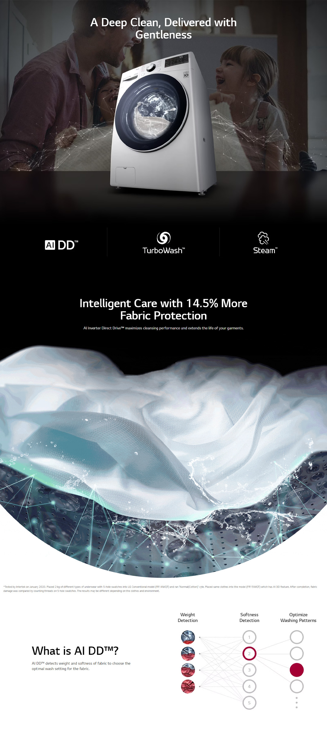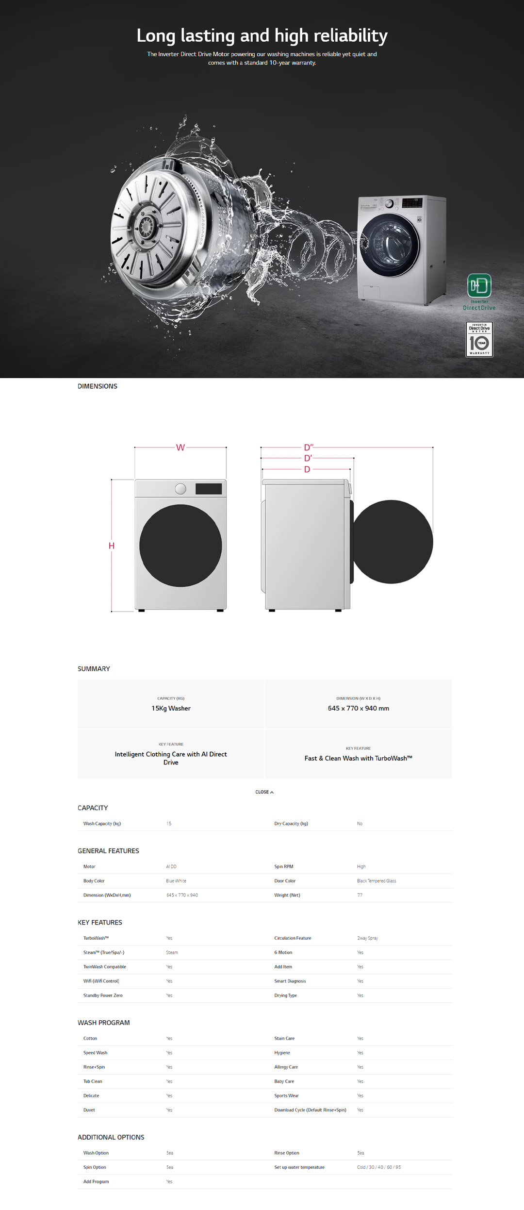 LG 15KG Front Load Washing Machine with AI Direct Drive and TurboWash F2515STGW | Tempered Glass Door & Full Stainless Lifter | Steam | WiFi Control | Washing Machine with 1 Year Warranty