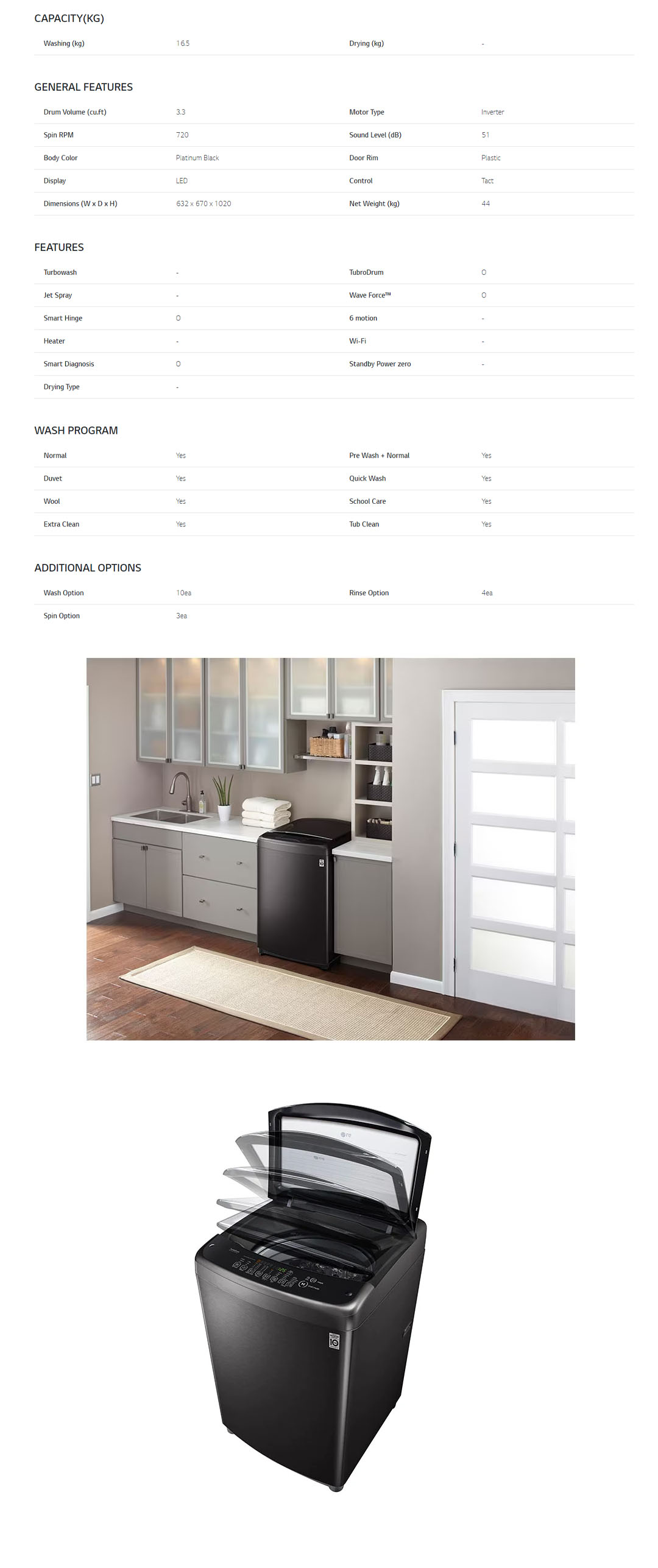 ● Smart Diagnosis™ ● Quick Wash ● Extra Clean ● Tub Clean