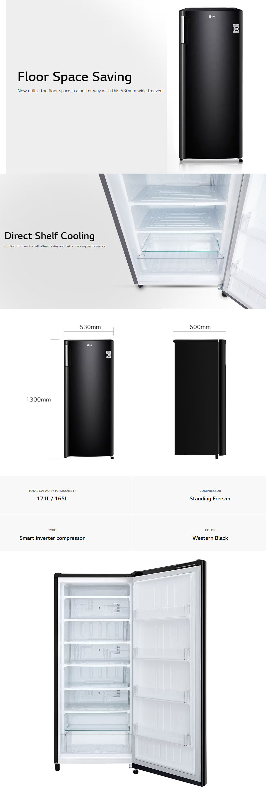 LG 171L Smart Inverter Upright Freezer GN-304SHBR / GN-304SLBR | Vertical Freezer | 6 Freezer Shelves | 4 Door Baskets | Sleek Design