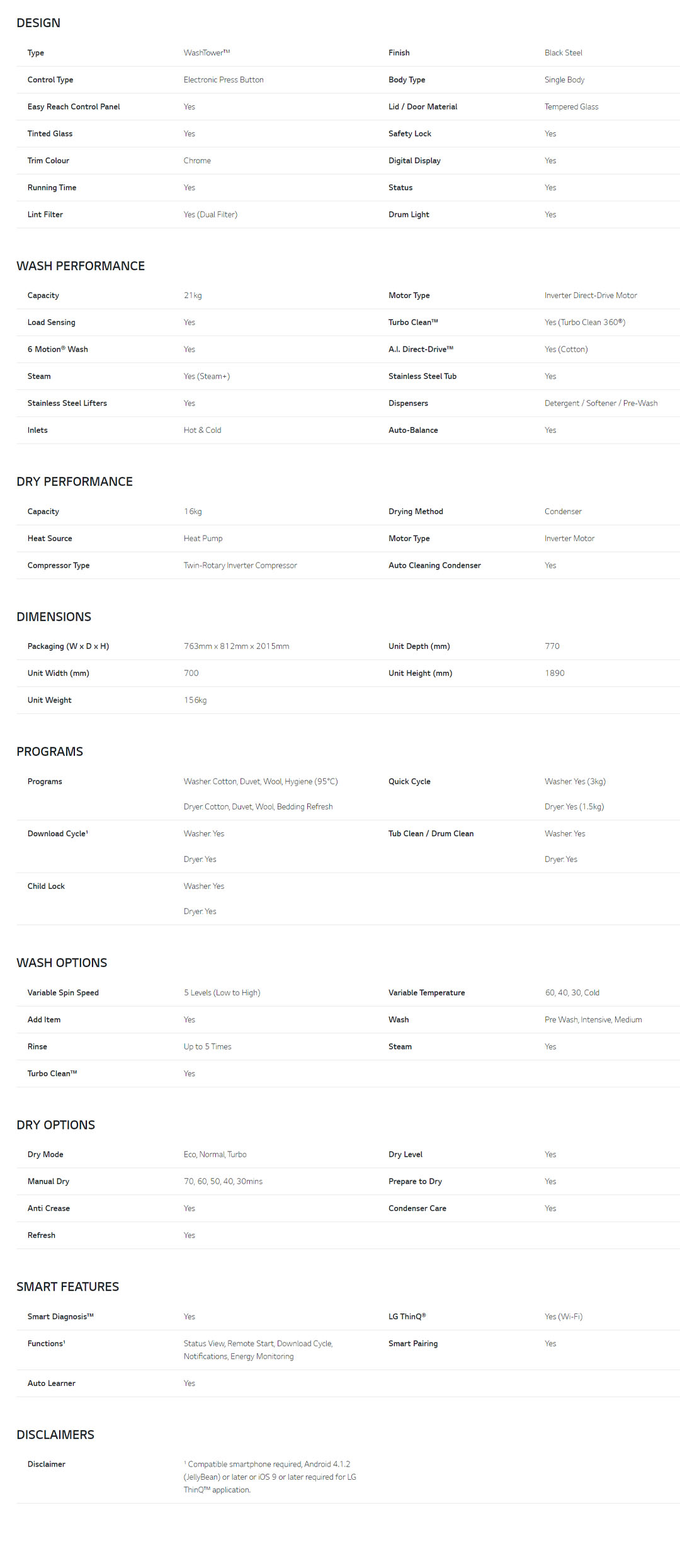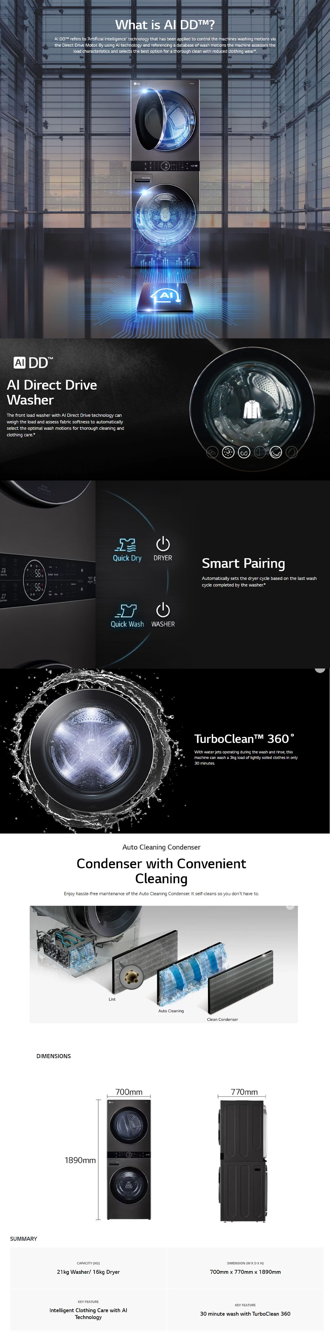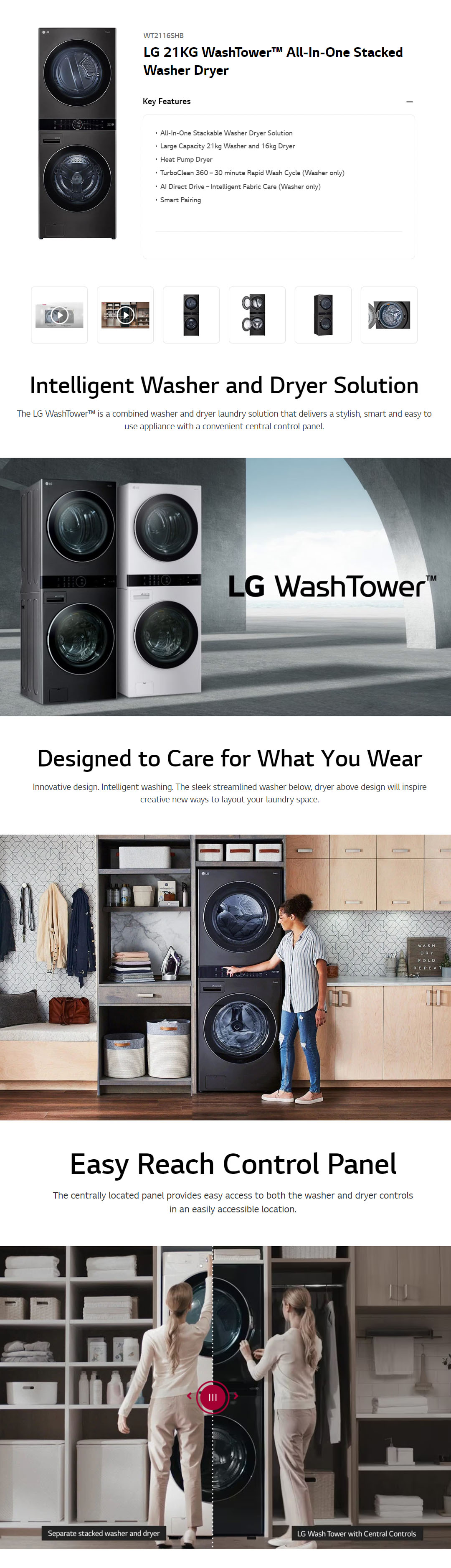 LG 21KG/16KG All-In-One Stacked Washer Dryer with AI Direct Drive WT2116SHB | Heat Pump Dryer | Smart Pairing | Safety Lock | Washer Dryer with 1 Year Warranty