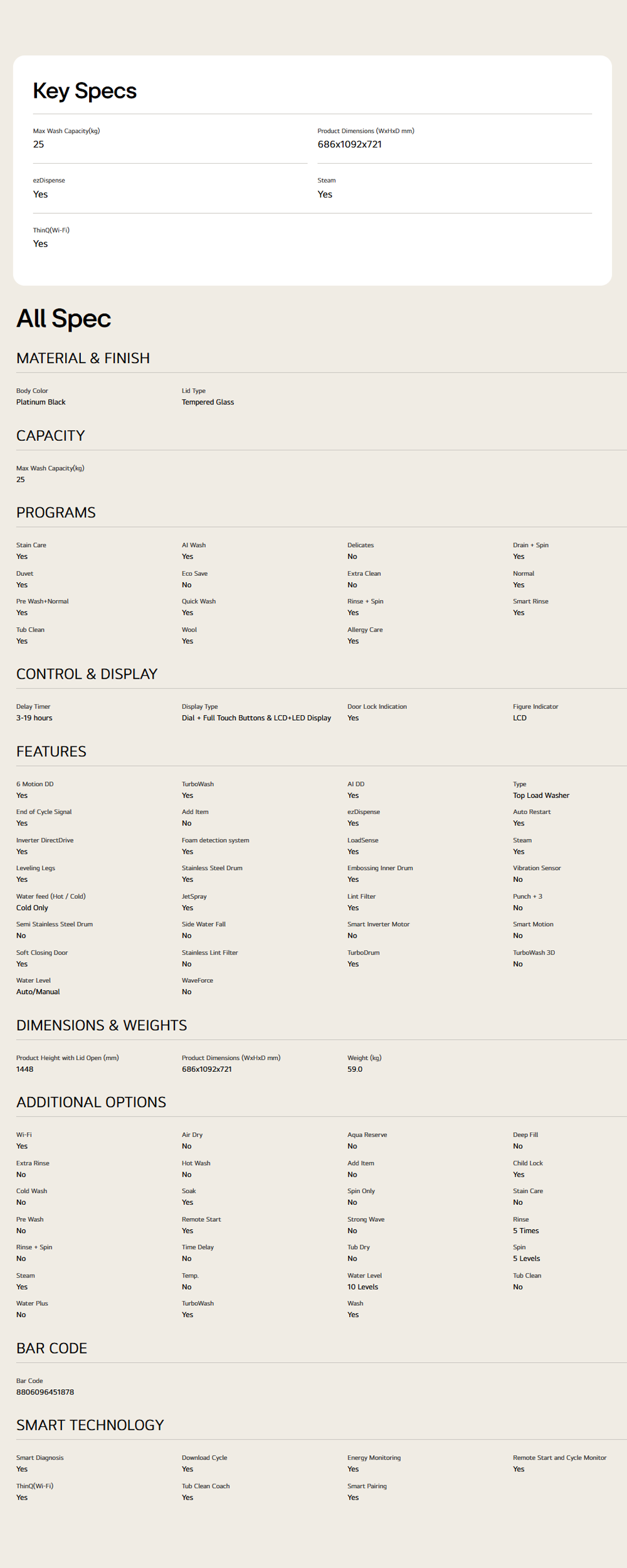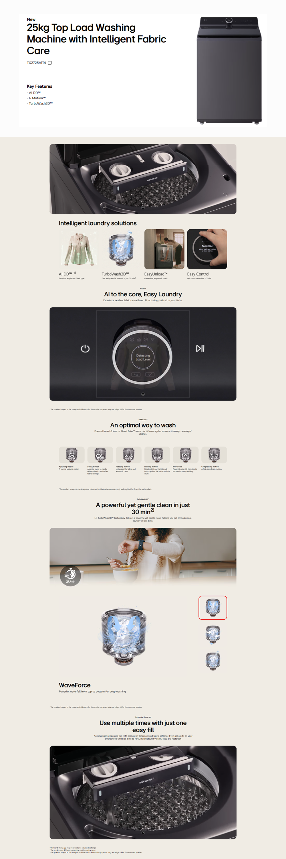 LG 18/ 20/ 22/ 25KG Top Load Direct Drive Inverter Washing Machine TX2518ST7G / TX2520ST5G / TX2522AT9G / TX2725AT9J | AI Direct Drive | TurboClean 3D | Informative LCD Display | 6 Motion DD