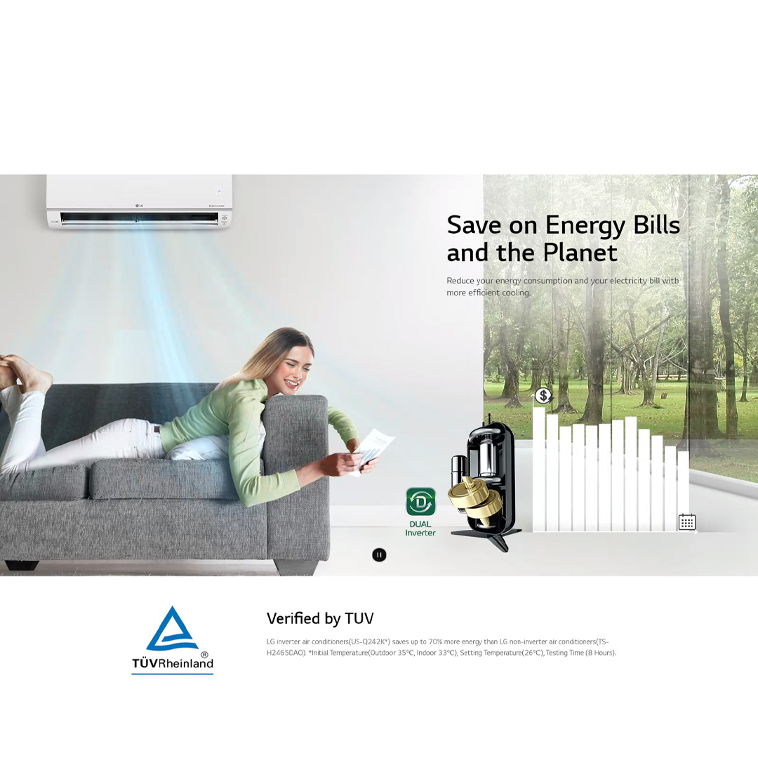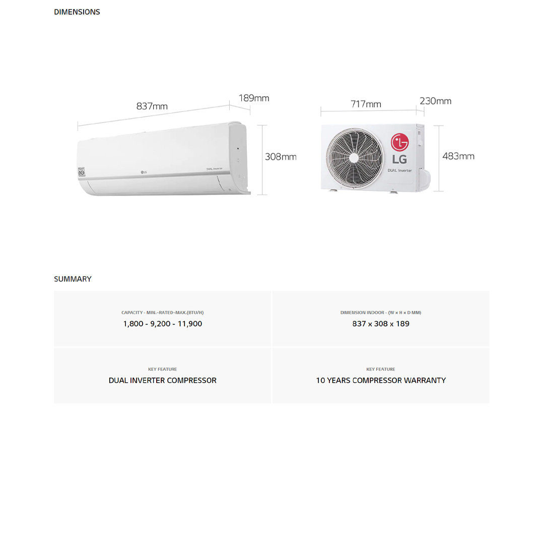 LG 2HP R32 Dual Inverter Deluxe Wall Mount Air Conditioner S3-Q18KL3WA | Self Diagnosis | Dehumidification | Sleep Mode | Smart Diagnosis | Auto Cleaning | Easy Control | Number Display | Air Conditioners with 1 Year Warranty