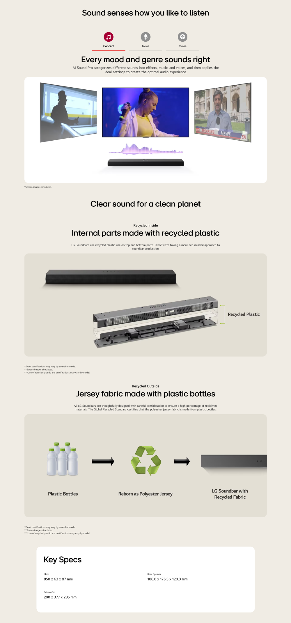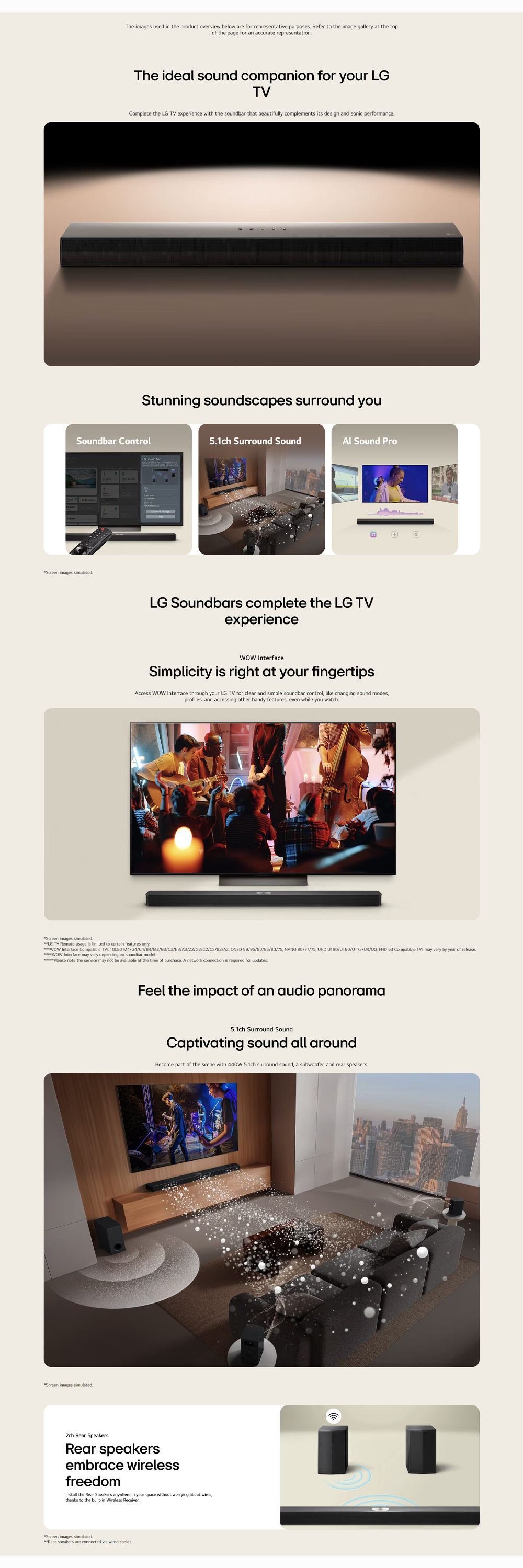 ▪ Cinematic Sound Projection ▪ WOW Interfac ▪ Rear Speakers ▪ LG Soundbar App (Advanced EQ Settings)