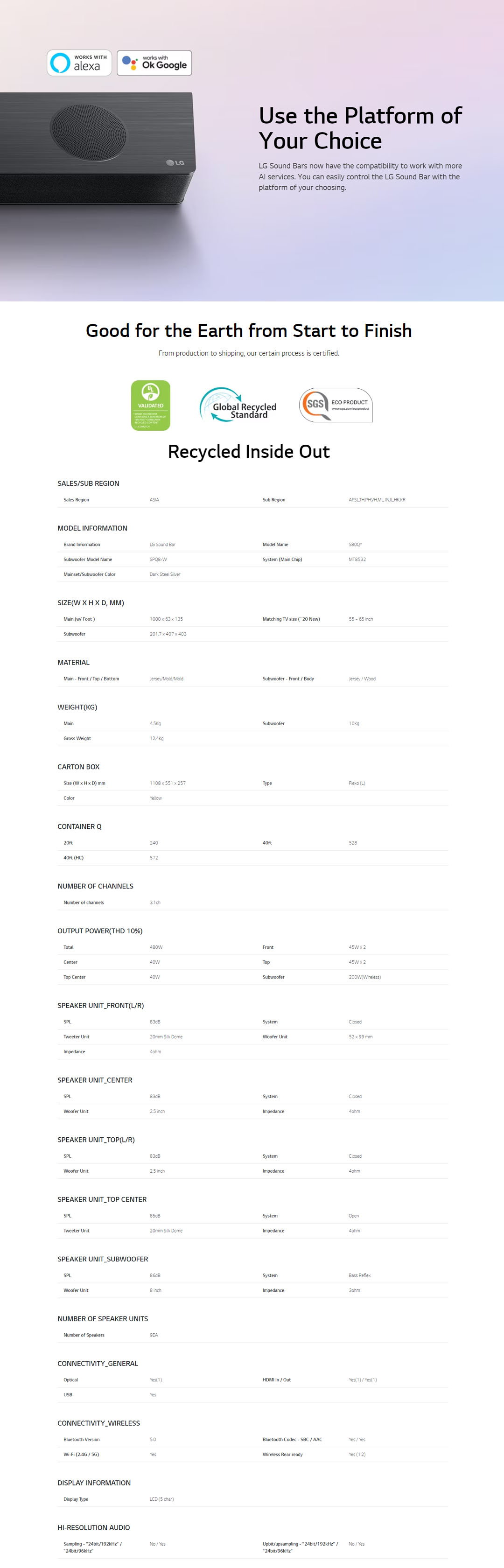 LG 480W Sound Bar with Dolby Atmos S80QY | AI Room Calibration | AI Sound Pro | Meridian | Sound Bar with 1 Year Warranty