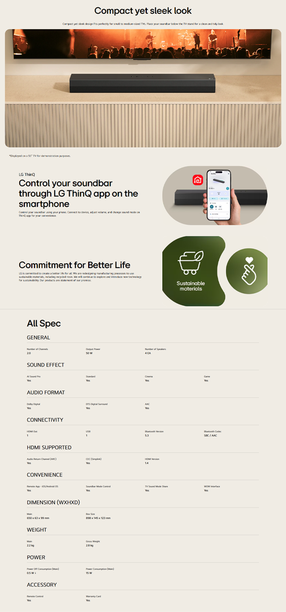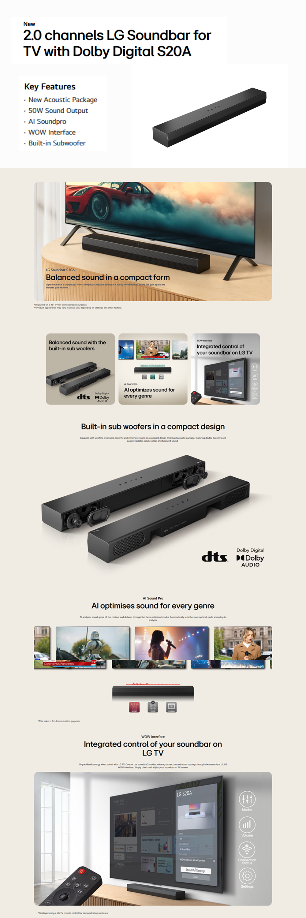 LG 50W 2.0ch Compact All-In-One Soundbar S20A | Dolby Digital | 2.0ch Acoustic Package | AI Sound Pro | TV Sound mode share