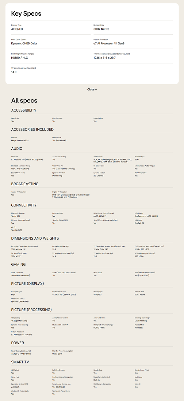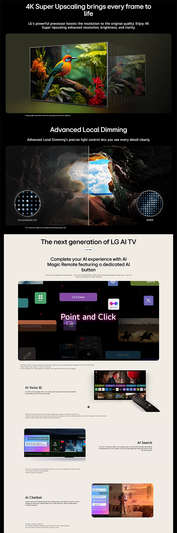 LG 55"/ 65"/ 75"/ 86" 4K UHD QNED AI QNED80 Smart TV QNED80ASA | QNED Color | alpha 7 4K AI Processor Gen8 | Dolby Atmos