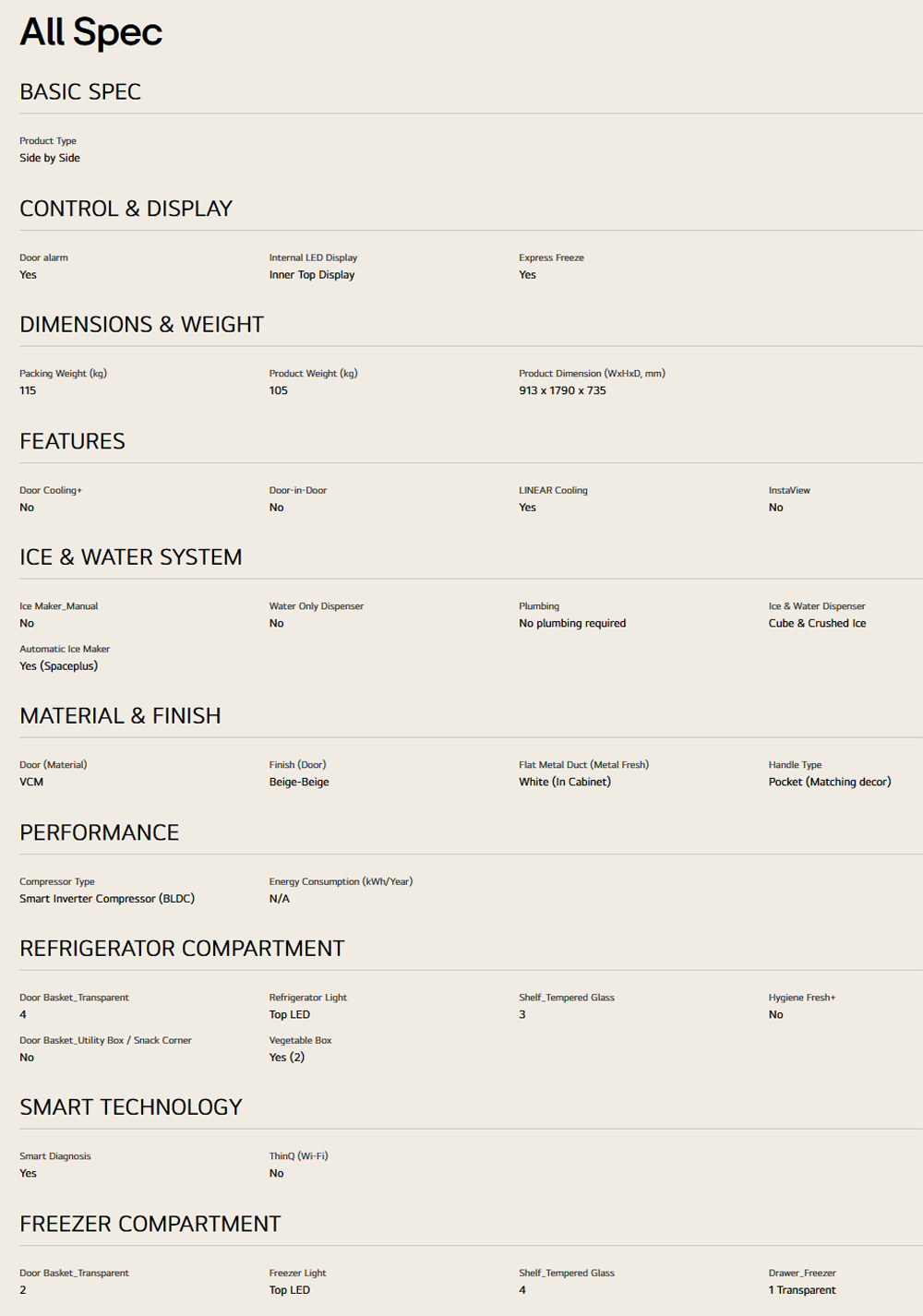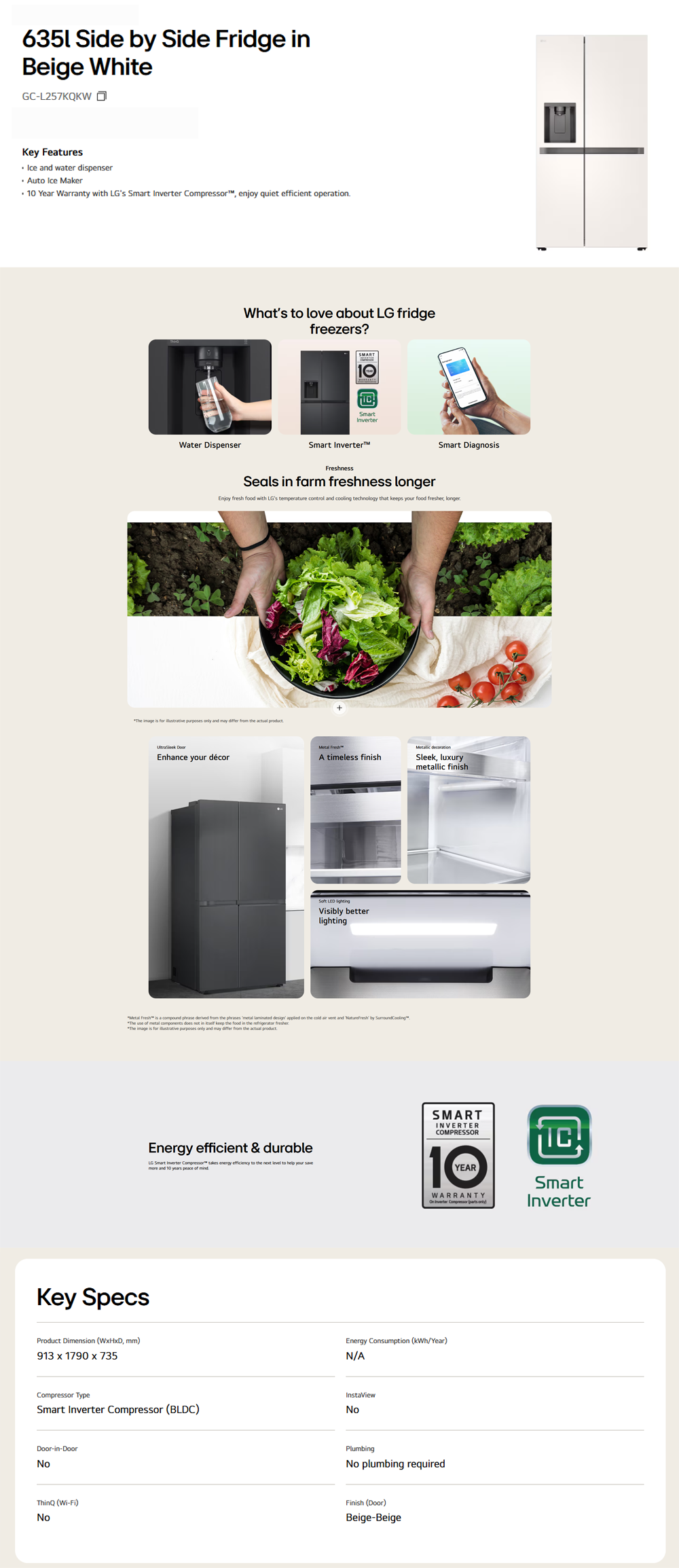 LG 635L Side by Side Inverter Refrigerator Beige GC-L257KQKW | Ice and water dispenser | Auto Ice Maker | Metal Fresh