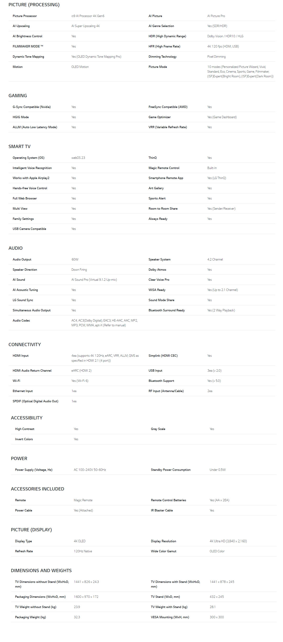 • Smart Functionality, including ThinQ AI, WebOS, and Hands-Free Voice Recognition