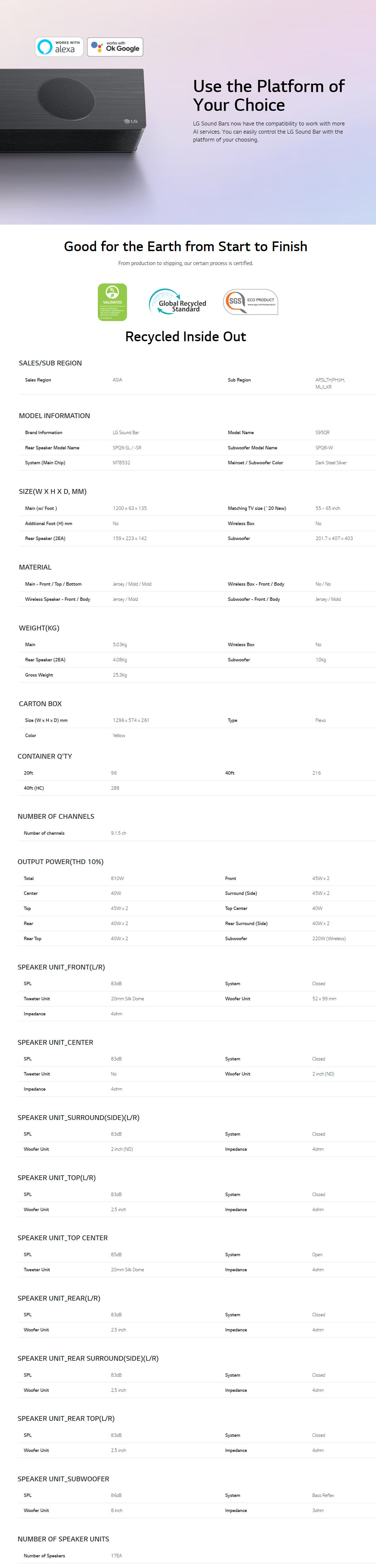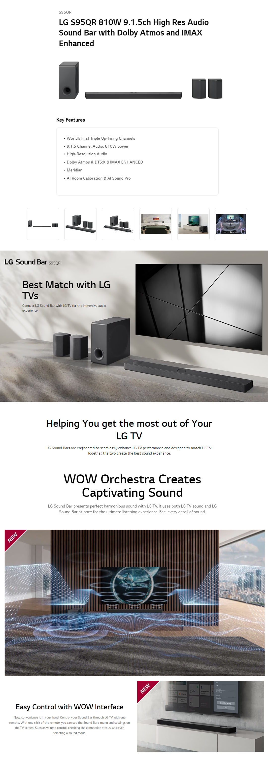 LG 810W Sound Bar with Dolby Atmos and IMAX Enhanced S95QR | High-Resolution Audio | HDMI In / Out | USB | Bluetooth | Sound Bar with 1 Year Warranty