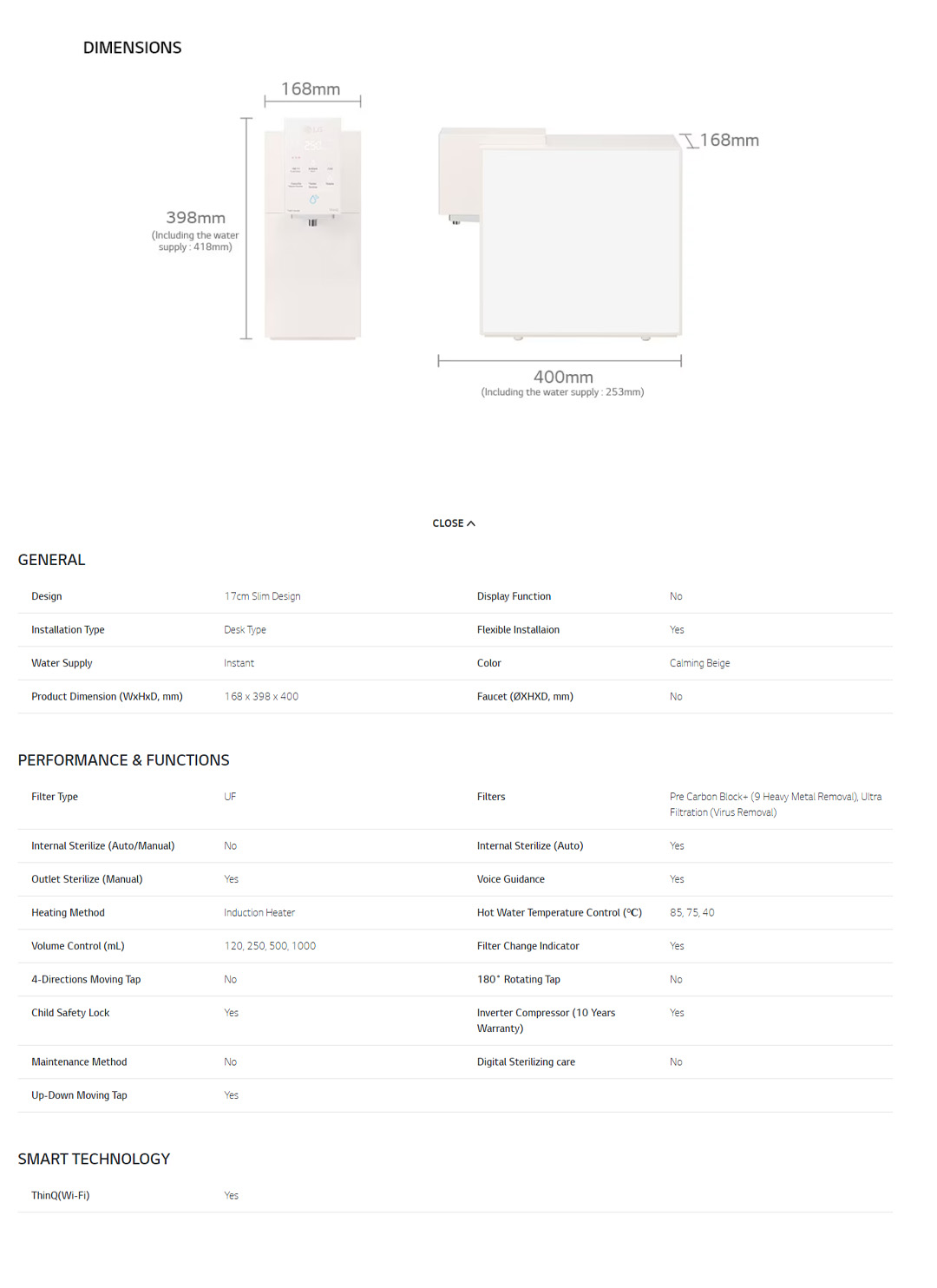 LG PuriCare Objet Collection Water Purifier WD518AN.ABGRLML | Up and Down Auto Moving Tap | Control Button Panel | Water Purifier with 1 Year Warranty