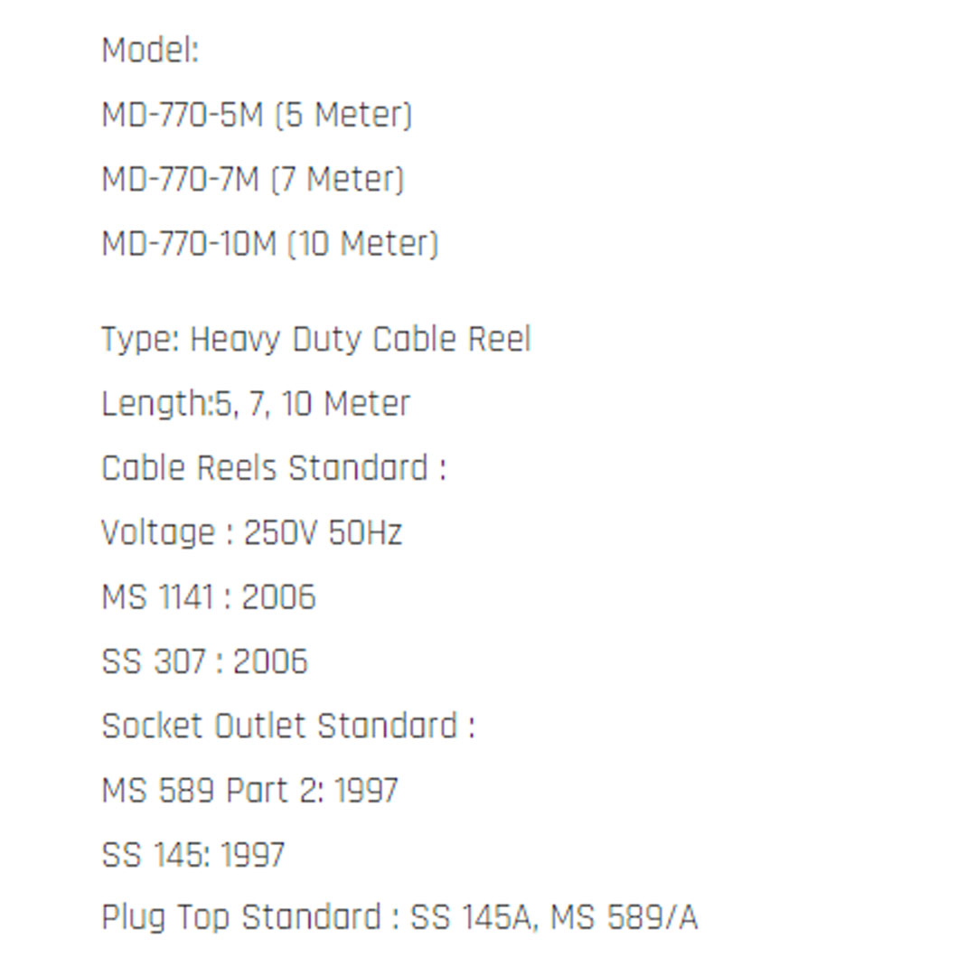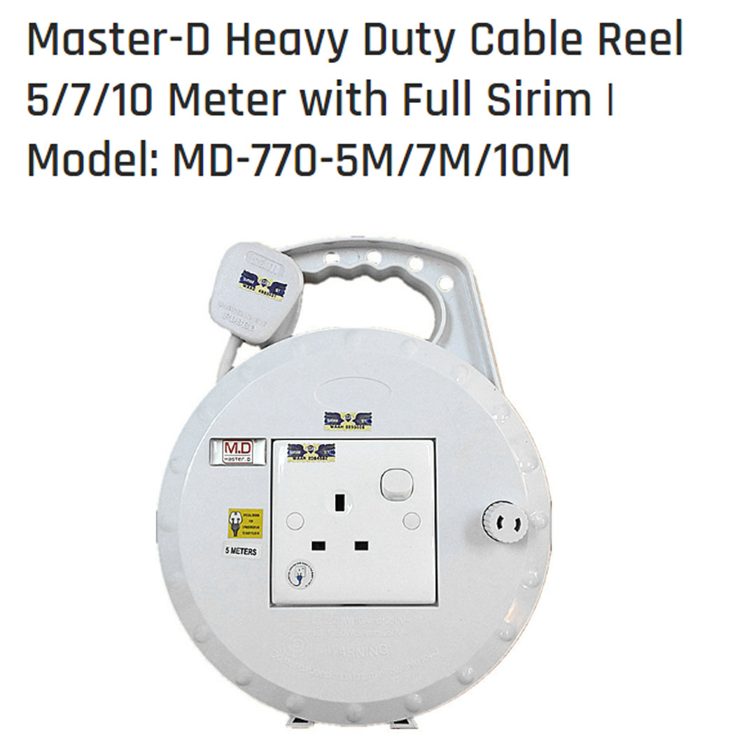 Master D 5/7/10m Heavy Duty Cable with Full Sirim Black (O) MD-770-5/7/10M | Plug Top Standard : SS 145A, MS 589/A | Voltage : 250V 50Hz | Socket Outlet Standard |