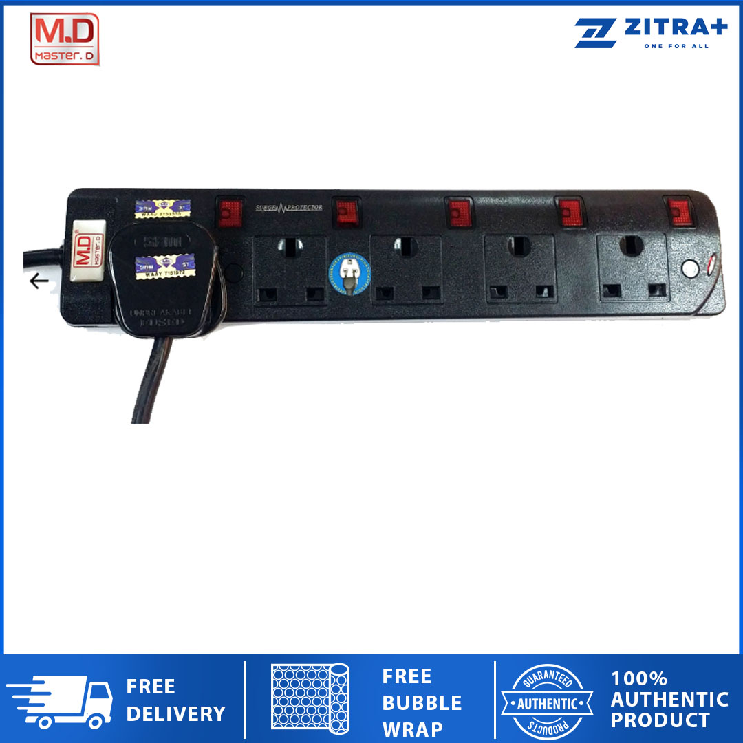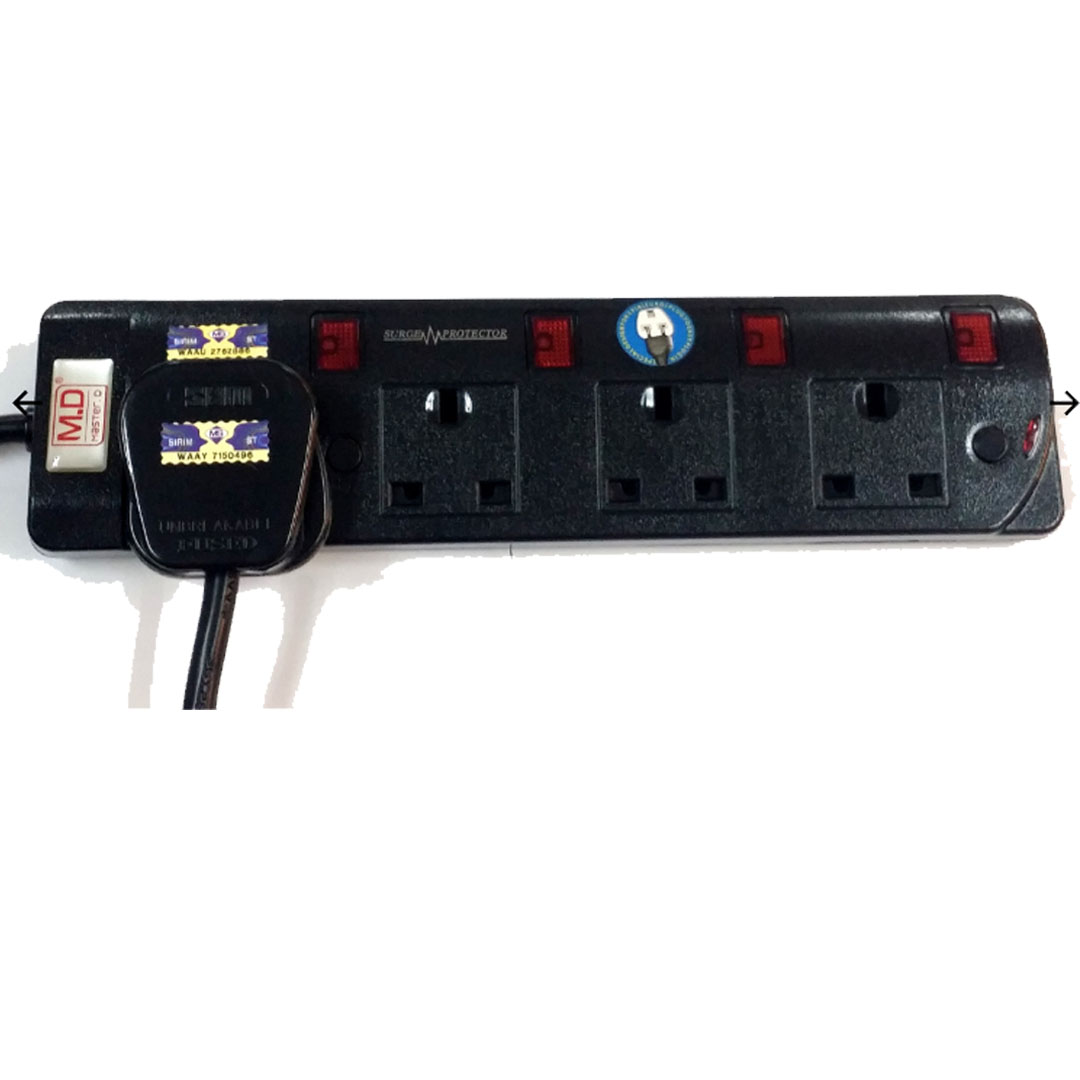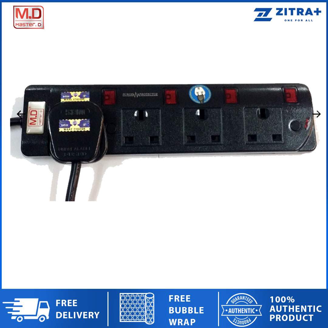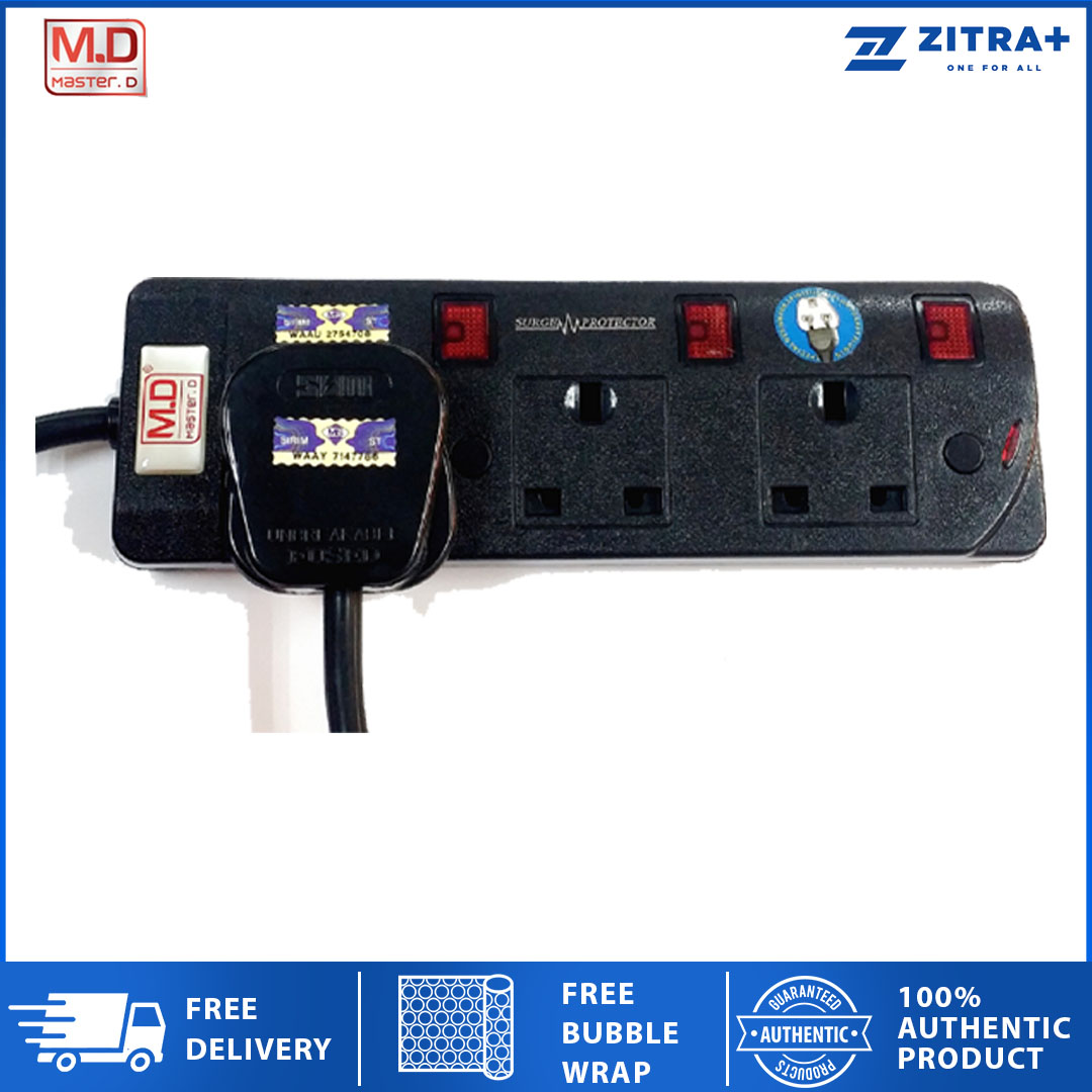 Master D Extension Socket 3/4/5 Gang 2 Meter Cable with Full Sirim MD-513/514/515N | Voltage 250V-50HZ | Max Load: 13AMP | Max Rate: 2500watts |