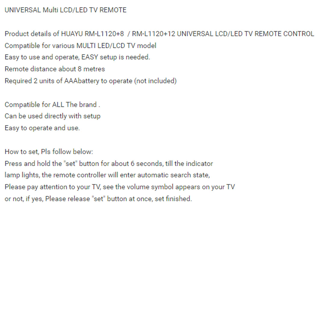 Master D Universal LED TV Remote Control (Support Multi Brand) RM-L1120+8 | Compatible for Various Multi LED/LCD TV Model | Easy to Use and Operate | Remote Distance 8 Meters |