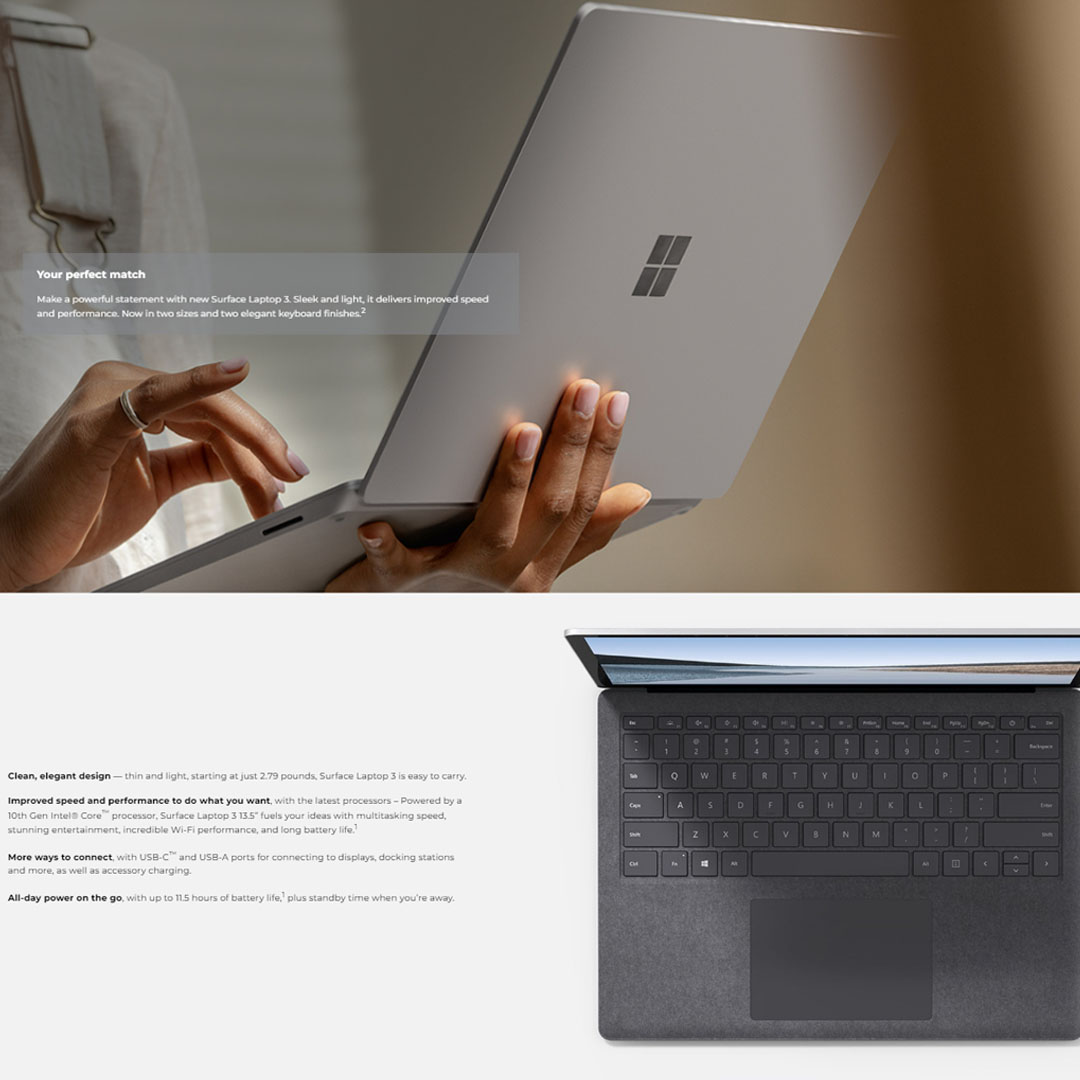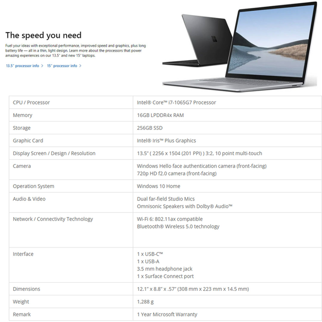 Microsoft Surface Laptop 3 Laptop VEF-00037 (Intel Core i7-1065G7/ 16GB+256GB SSD/ 13.5-inch HD/ W10) | Bluetooth 5.0 | Wi-Fi 6 | Windows 10 Home | Laptop with 1 Year Warranty
