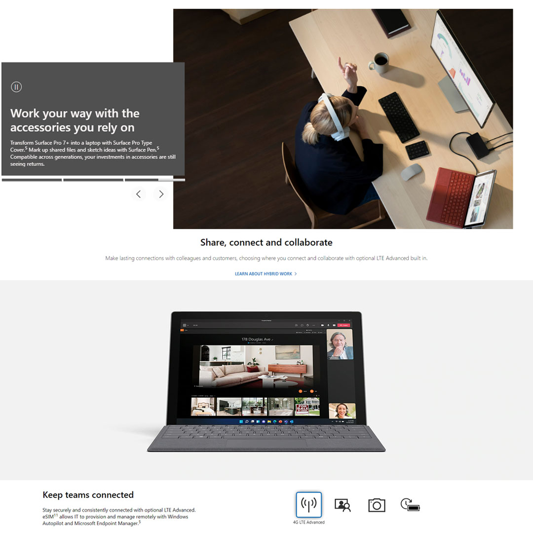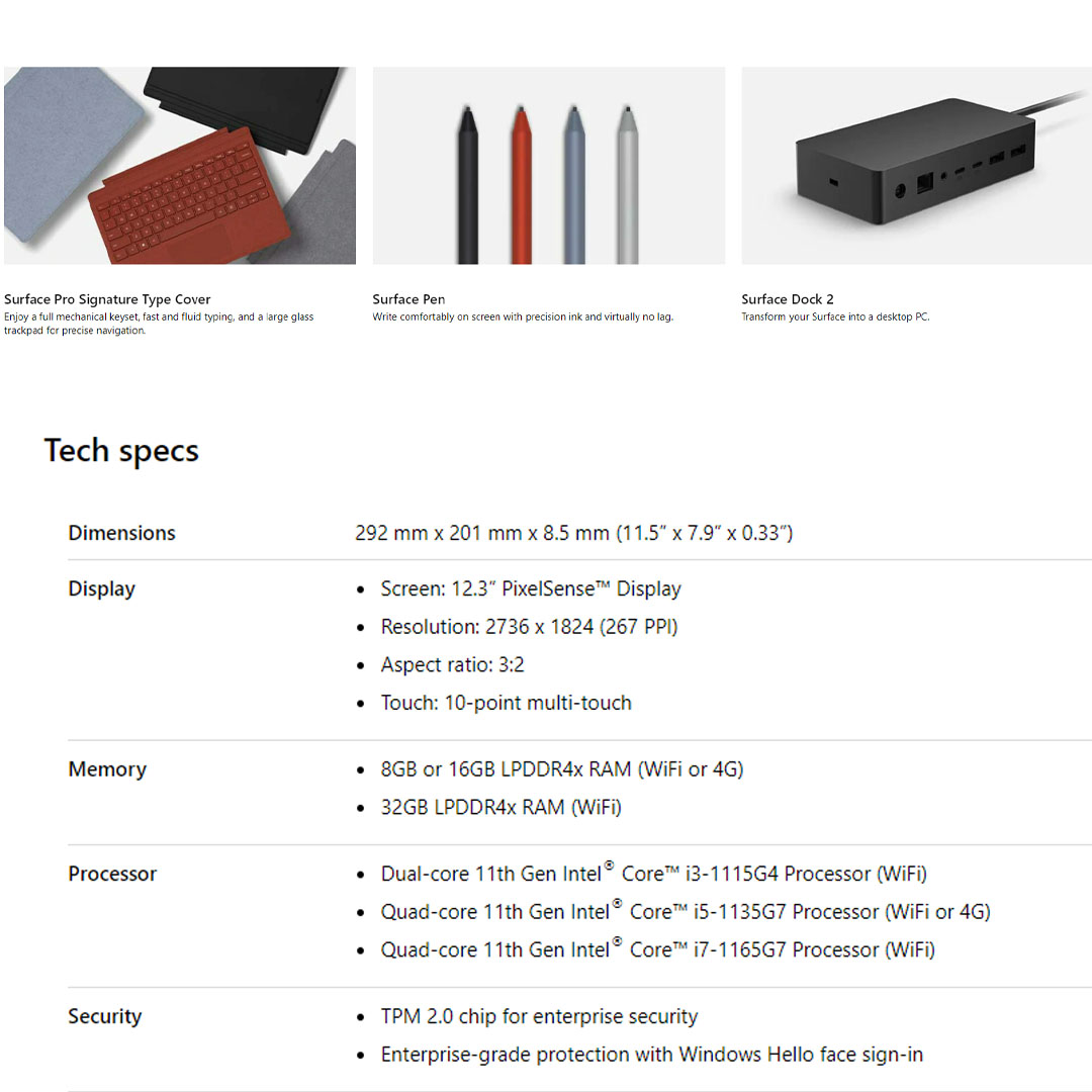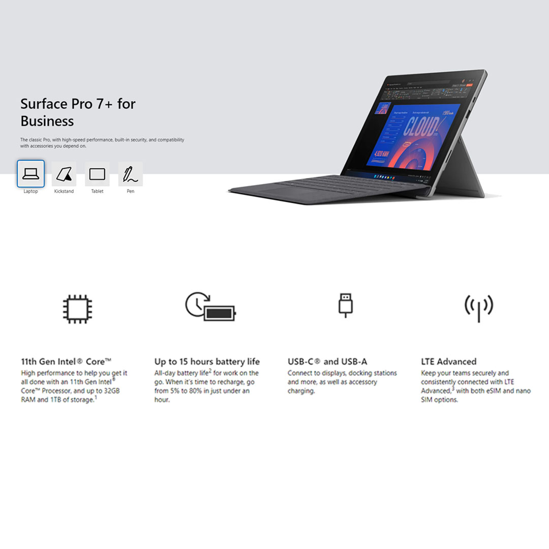 Microsoft Surface Pro 7+ Laptop TFN-00010 (Intel Core i5-1135G7/ 8GB+128GB SSD/ 12.3-inch HD/ W10) | WiFi 6: 802.11ax Compatible | Bluetooth Wireless 5.0 Technology | LTE Advanced | Laptop with 1 Year Warranty