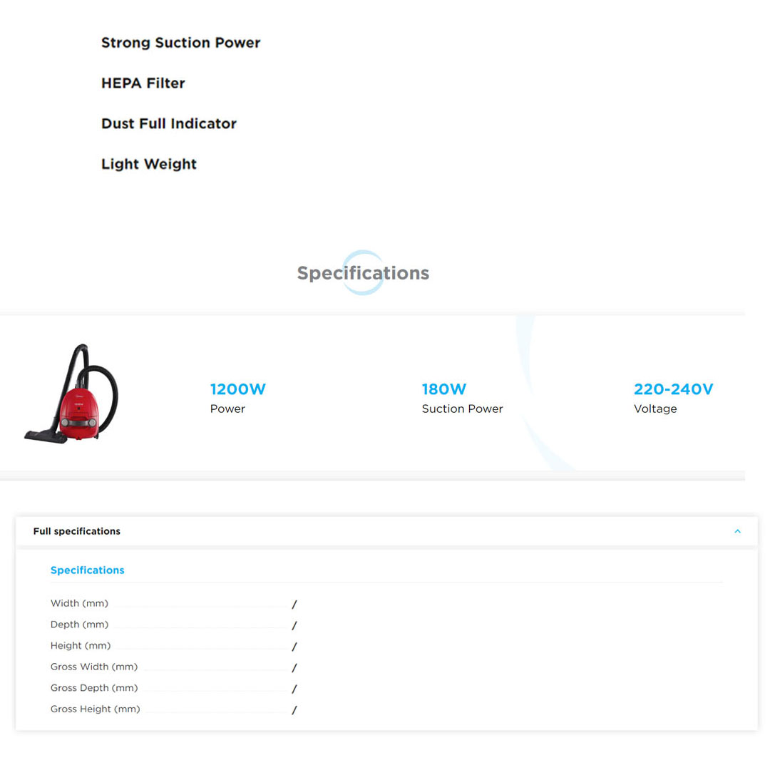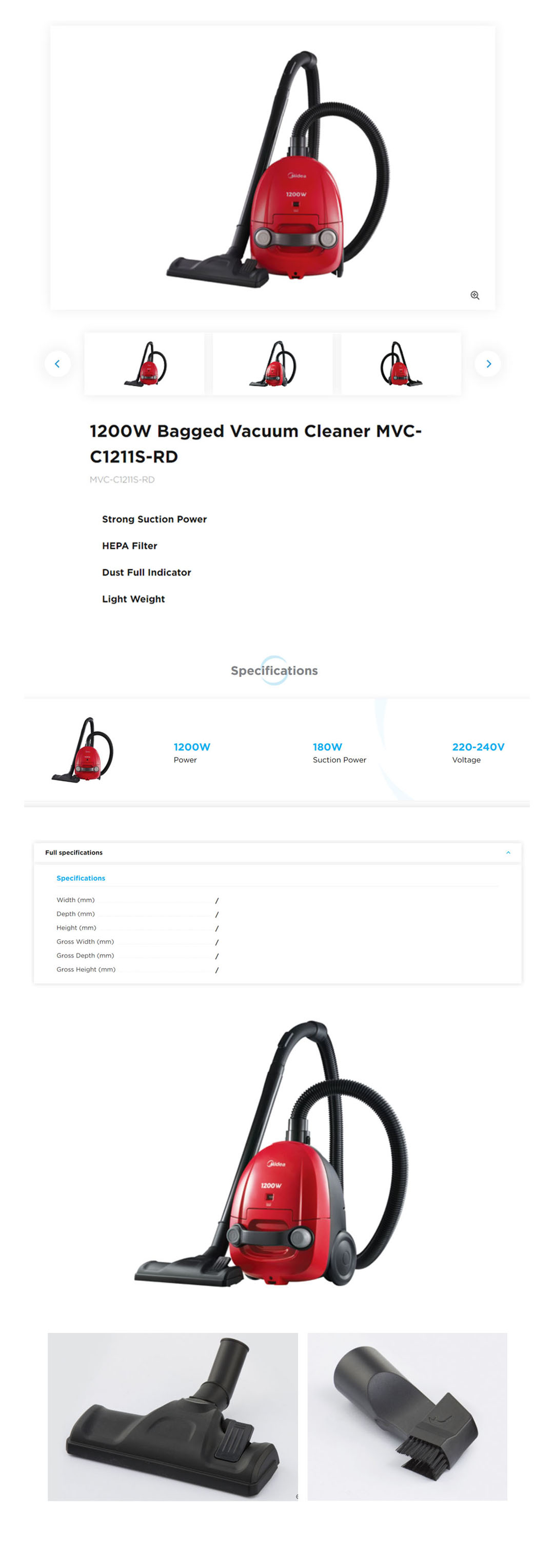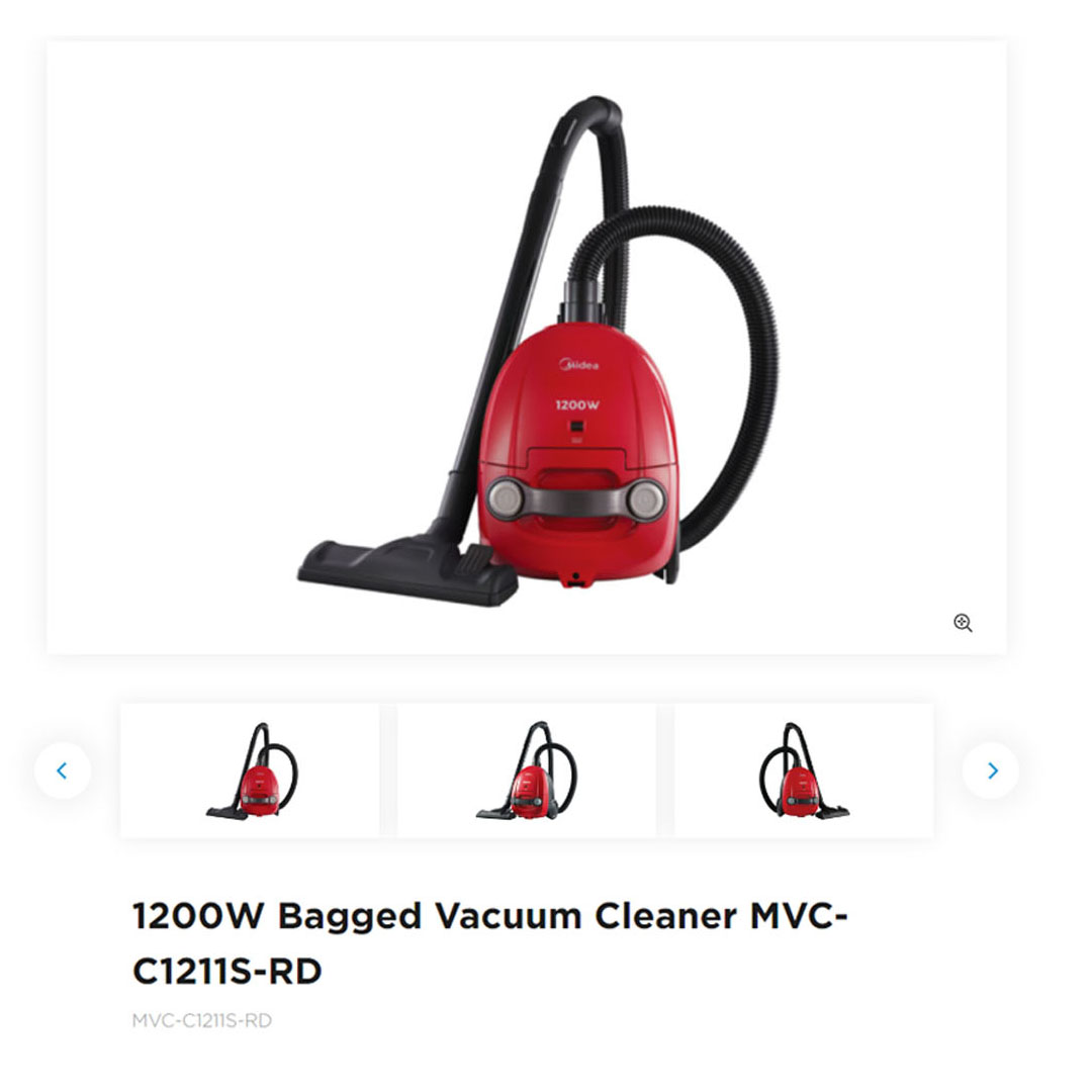 Midea 1200W Bagged Vacuum Cleaner MVC-C1211S-RD | Strong Suction Power | HEPA Filter | Dust Full Indicator | Light Weight | Vacuum Cleaner with 1 Year Warranty