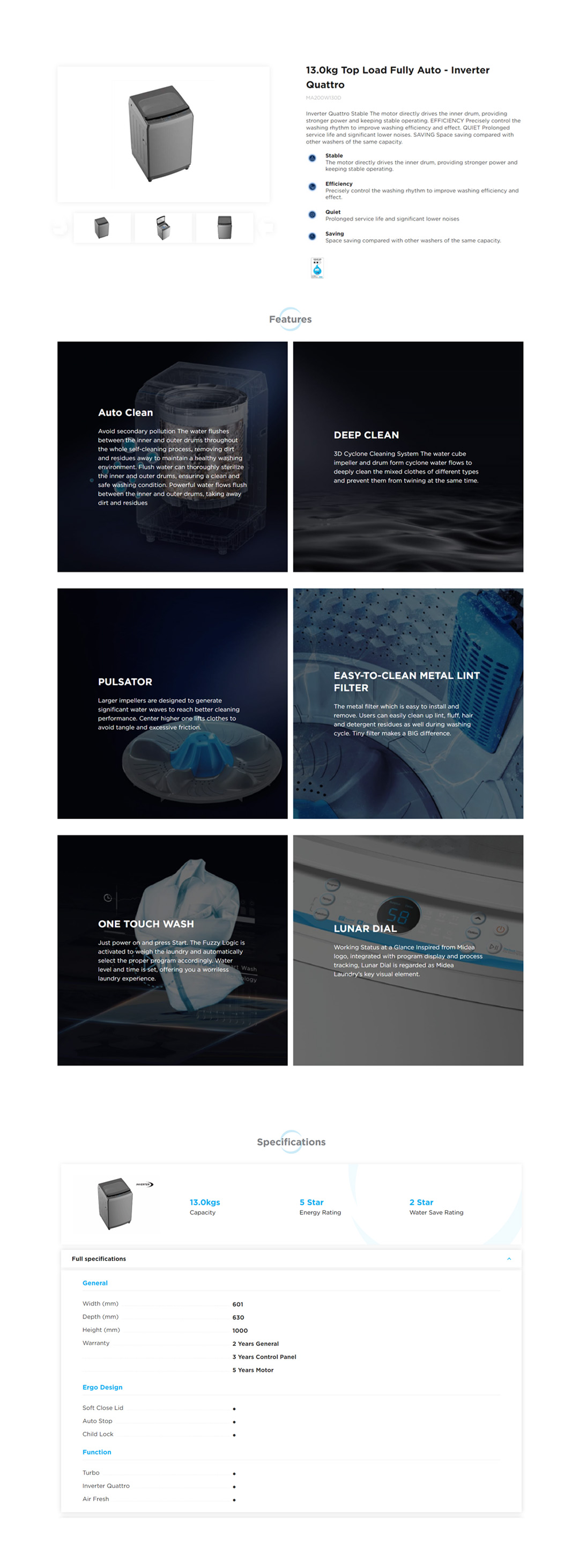 Midea 13KG Top Load Washing Machine With Inverter Quattro MA200W130D | Inverter Quattro | Easy-To-Clean Metal Lint Filter | AirFresh | Washer Dryer with 2 Years Warranty