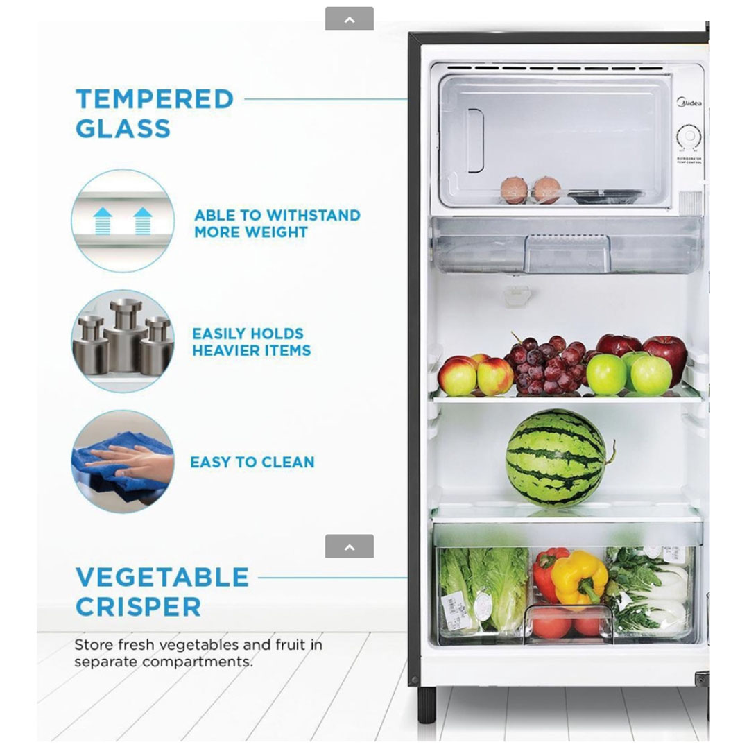 Midea 156L 1 Door Refrigerator MS-196 | Mechanical Temperature Control | Energy Saving | Semi Automatic Defrosting | Interior Light | Separate Chiller Compartment | Refrigerator with 1 Year Warranty