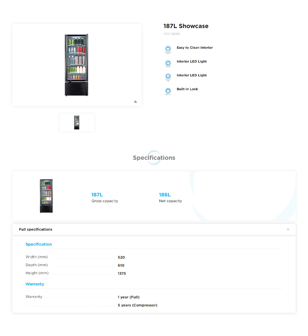 Midea 187L Showcase MSC-186BE | Hollow Tempered Glass | Recessed Handle | Multi-Layer Shelf | Showcase with 1 Year Warranty
