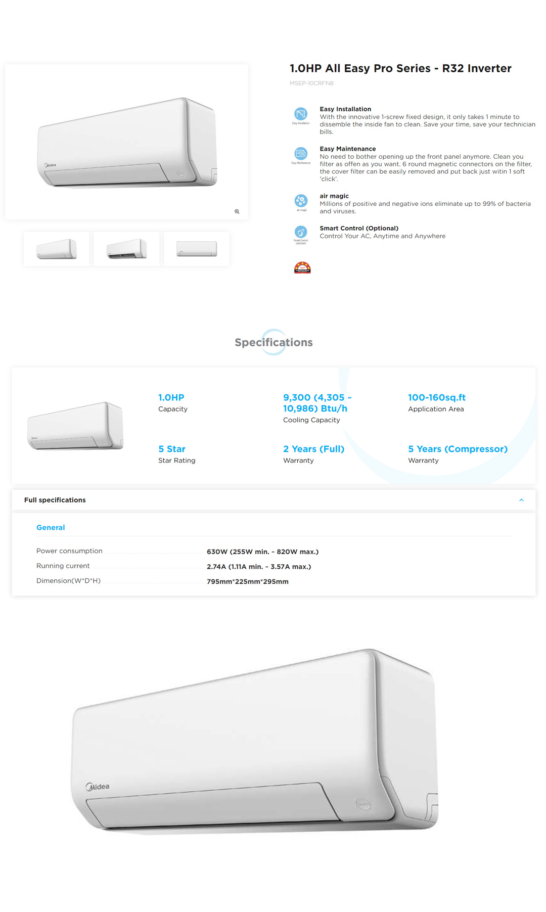 Midea 1HP R32 Inverter Wall Mount Air Conditioner MSEP-10CRFN8 | iECO Mode (Energy Saving) | Golden fin (Cooling Coil) | High Density Filter | Air Conditioner 2 Years Warranty