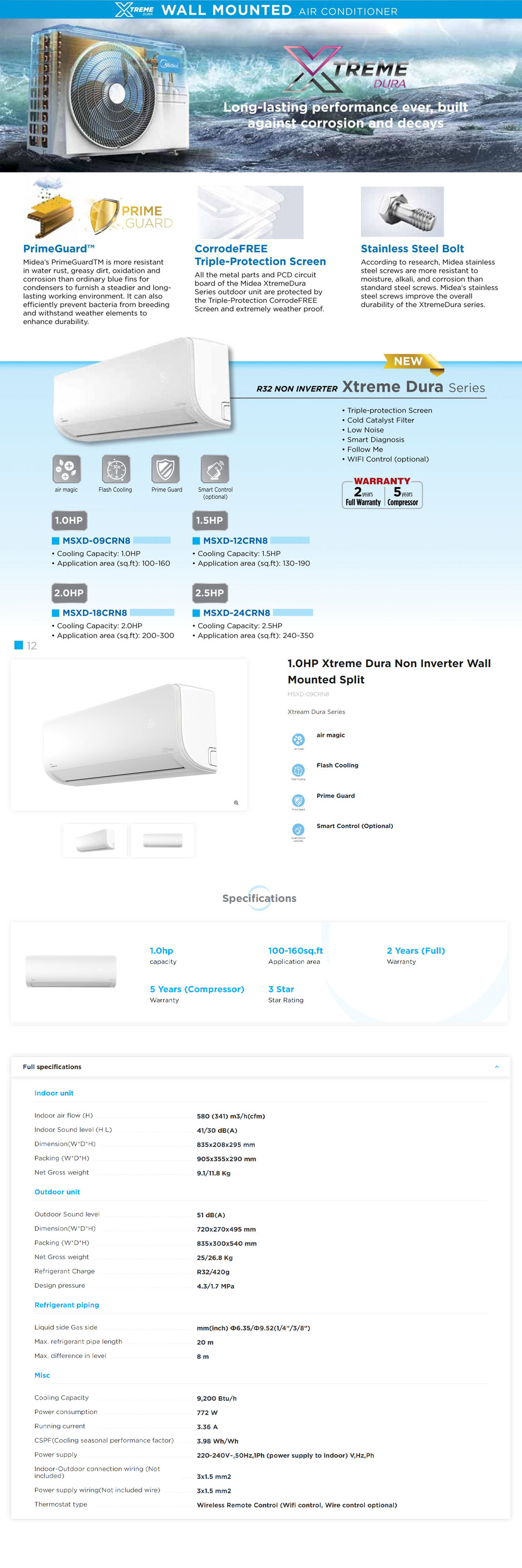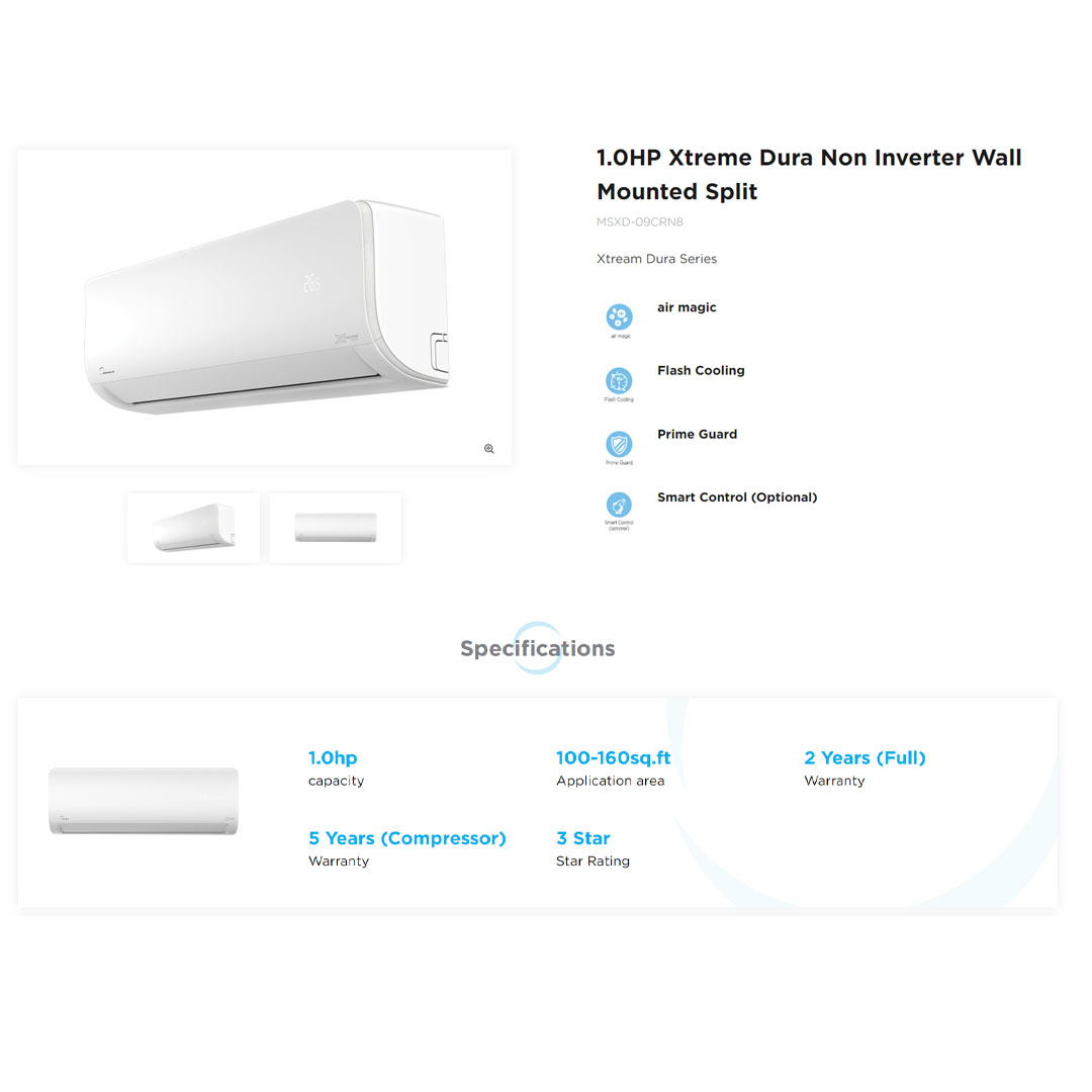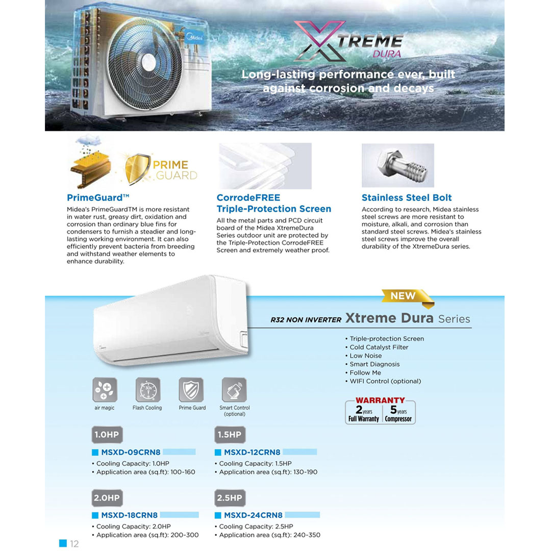 Midea 1HP R32 Xtreme Dura Non-Inverter Wall Mount Air Conditioner MSXD-09CRN8 | Air Magic | Flash Cooling | Prime Guard | Smart Control | Triple-protection Screen | Cold Catalyst Filter | Air Conditioner with 2 Year Warranty