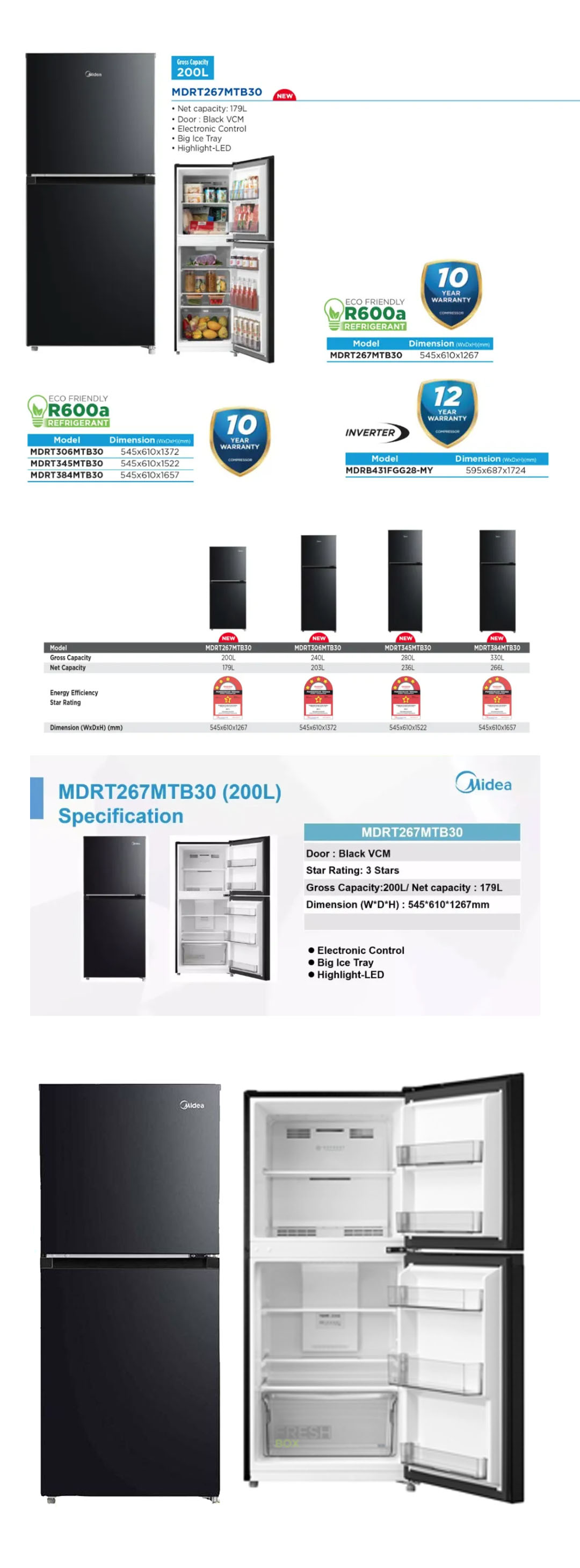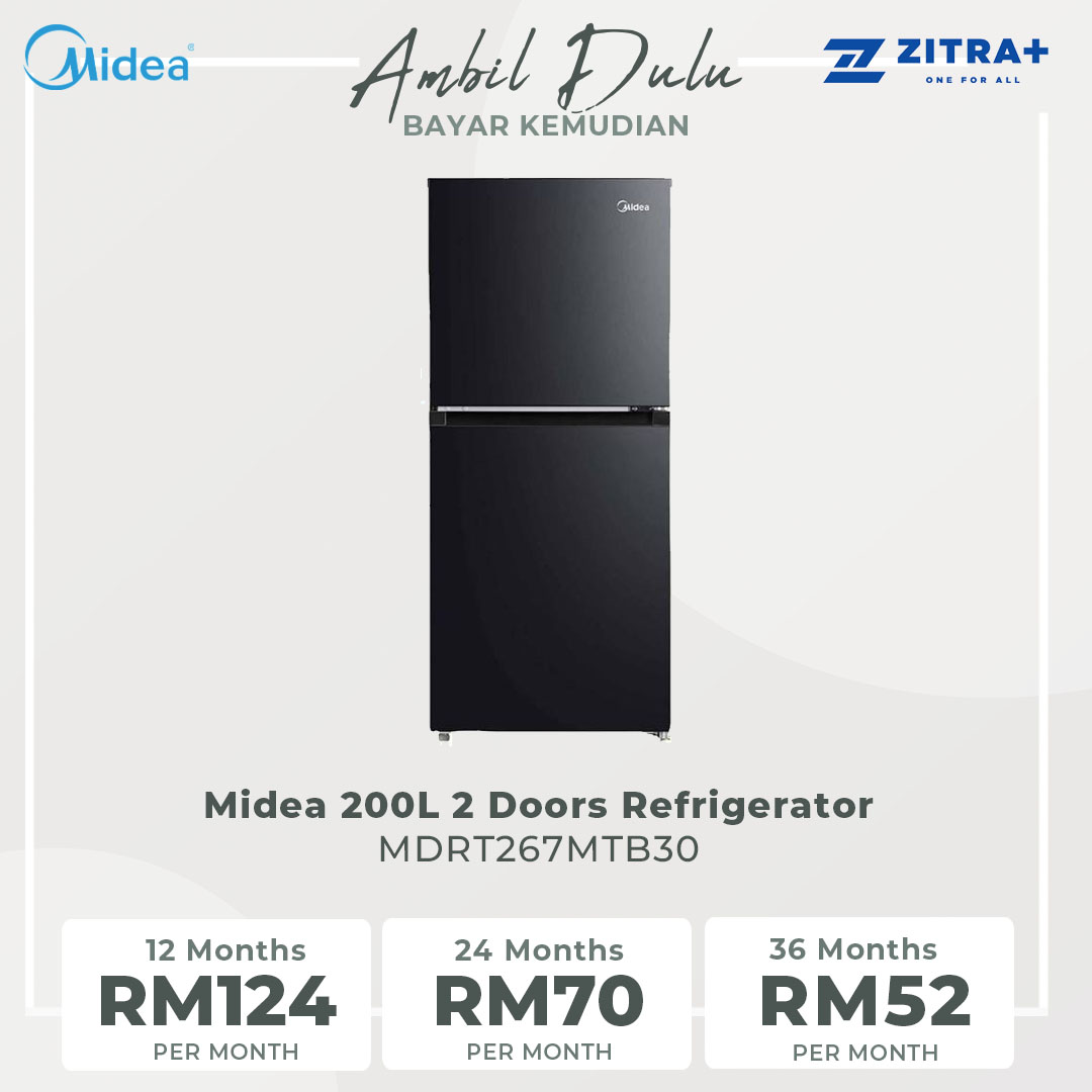 Midea 200L 2 Doors Refrigerator MDRT267MTB30 | Big Ice Tray | Electrical Control | Highlight-LED | Refrigerator with 1 Year Warranty