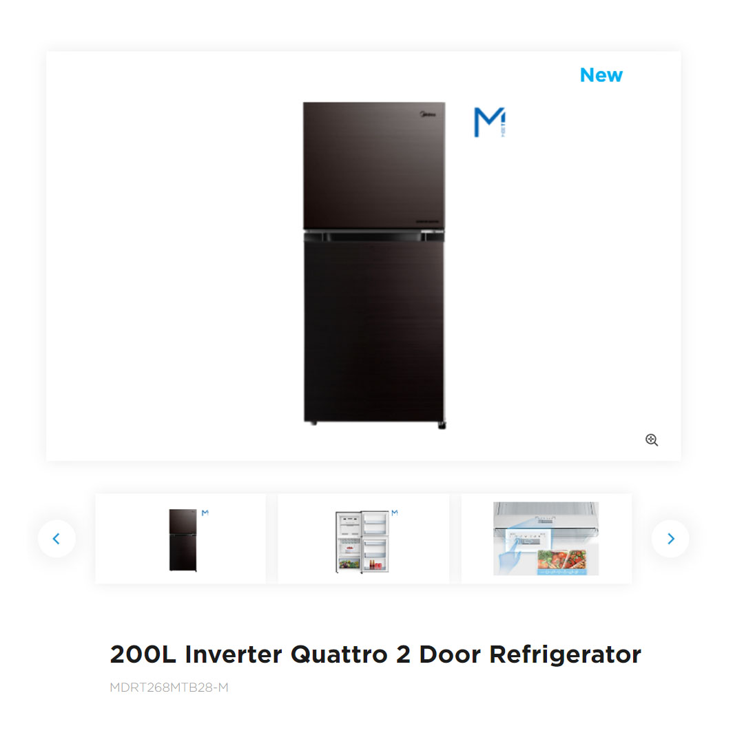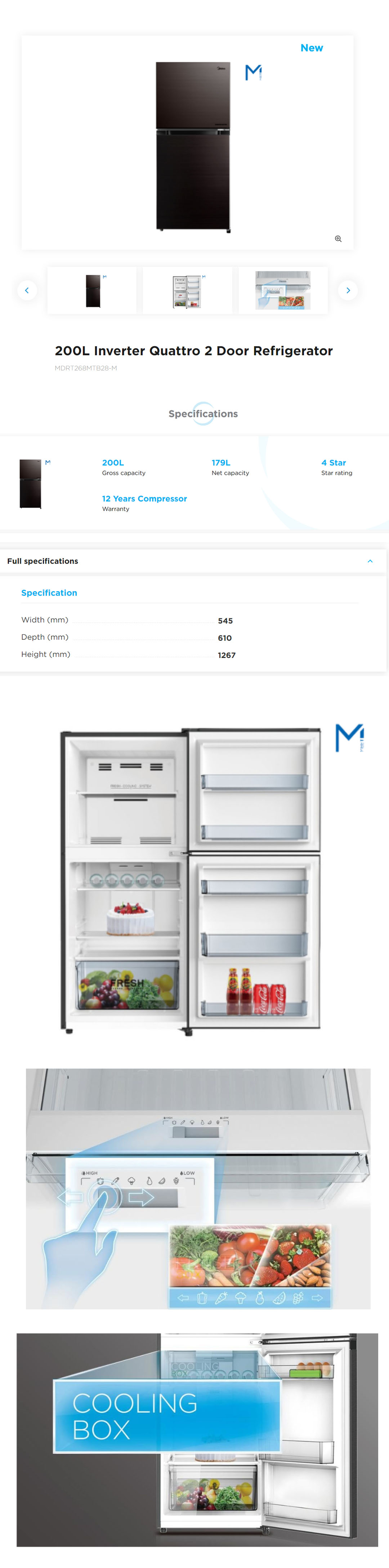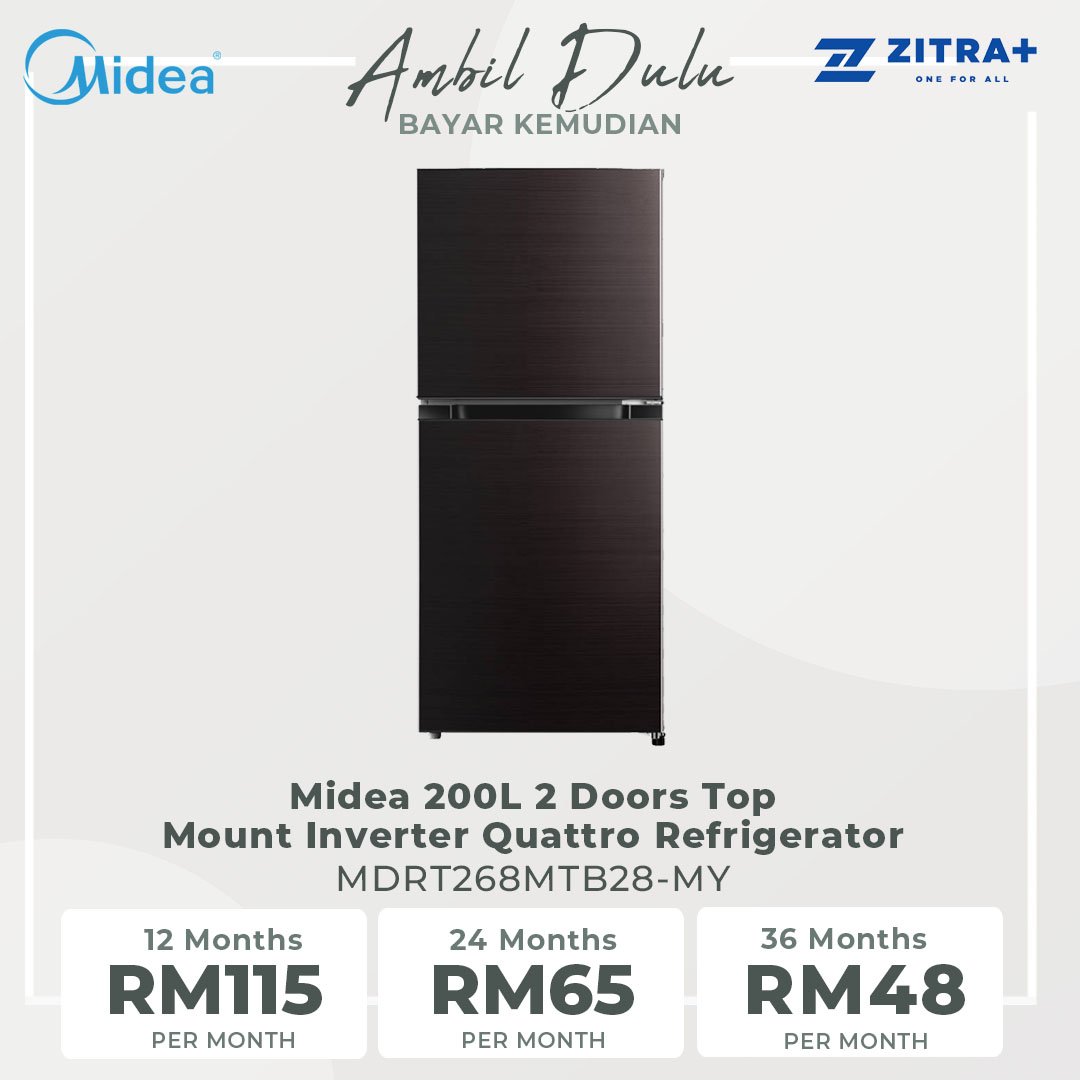 Midea 200L 2 Doors Top Mount Inverter Quattro Refrigerator MDRT268MTB28-MY | Inverter Quattro | Smart Sensor | Active-C Fresh | Refrigerator with 1 Year Warranty