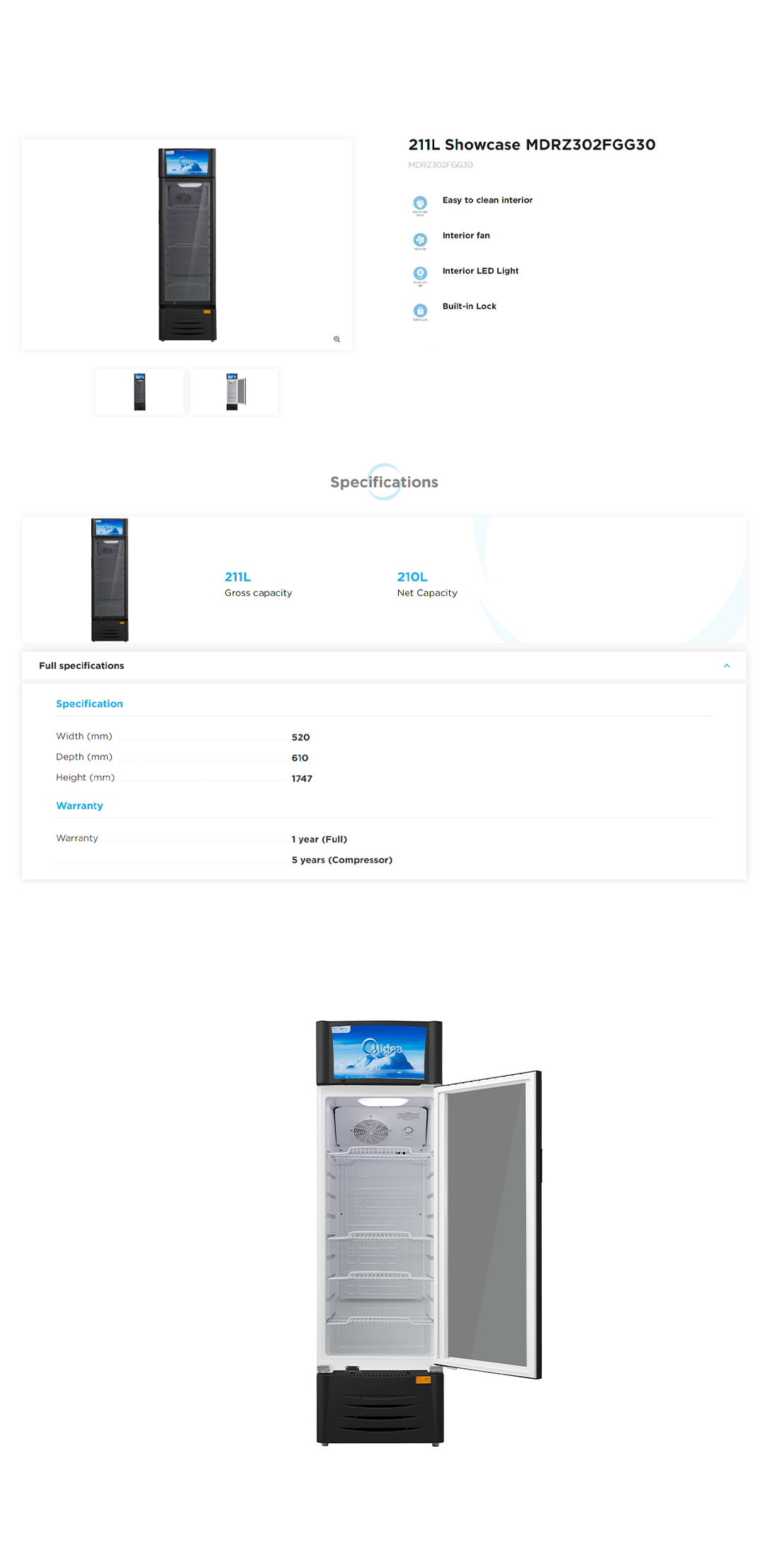 Midea 211L Showcase MDRZ302FGG30 | Recessed Handle | Multi-Layer Shelf | Temperature Knob | Showcase with1 Year Warranty