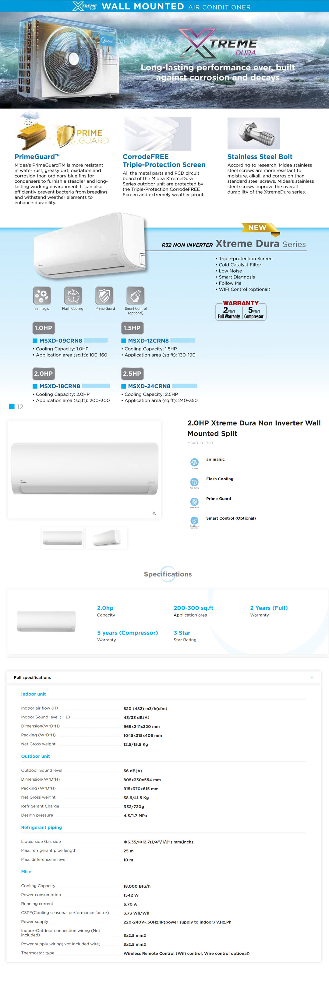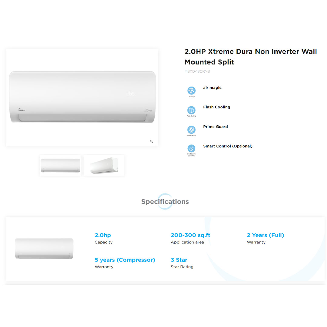 Midea 2HP R32 Xtreme Dura Non-Inverter Wall Mount Air Conditioner MSXD-18CRN8 | Air Magic | Flash Cooling | Prime Guard | Smart Control | Triple-protection Screen | Cold Catalyst Filter | Air Conditioner