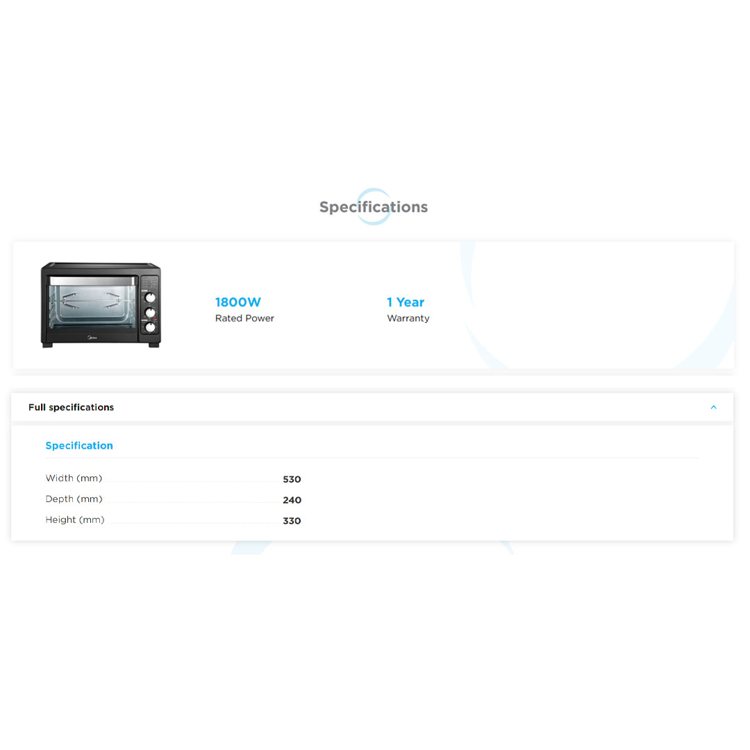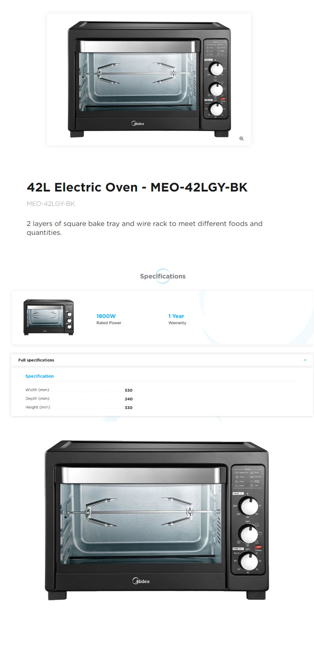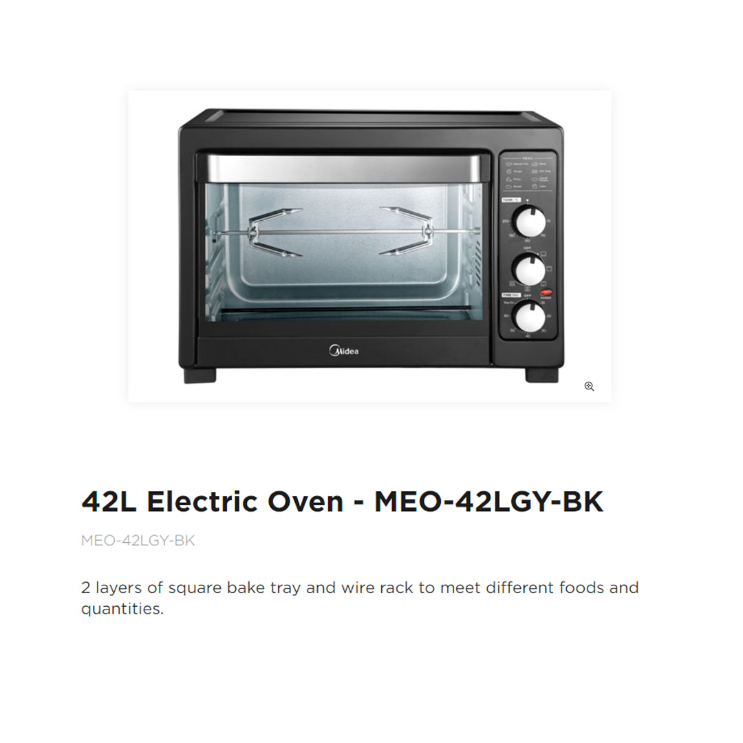 Midea 42L Electric Oven MEO-42LGY-BK | 5 Heating Function | Perfect for Baking and Toasting | Rotisseries and Convection Function | Metallic Heating Elements Tube | Oven with