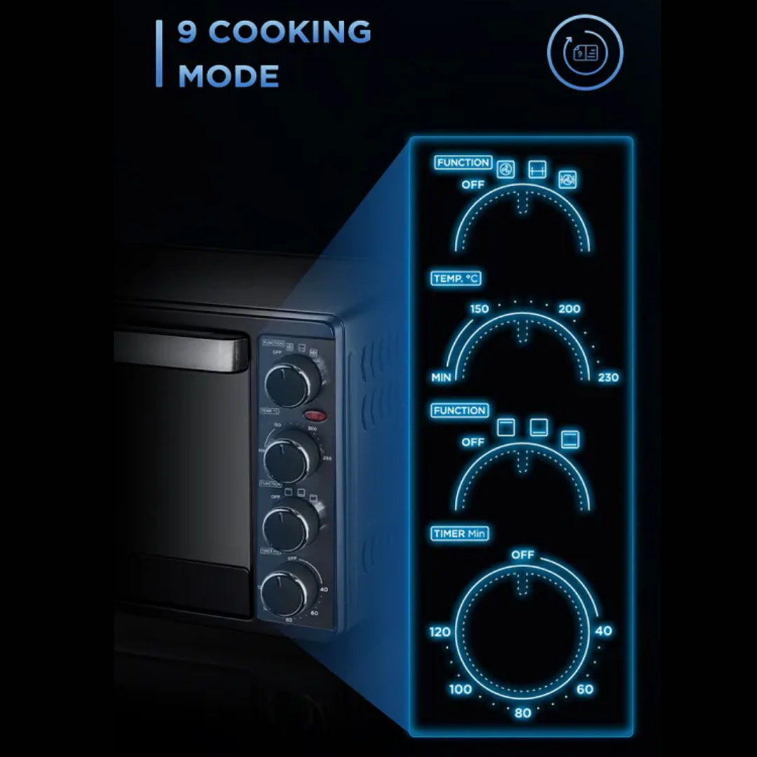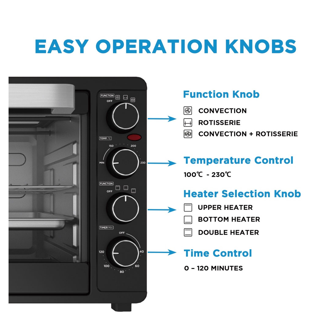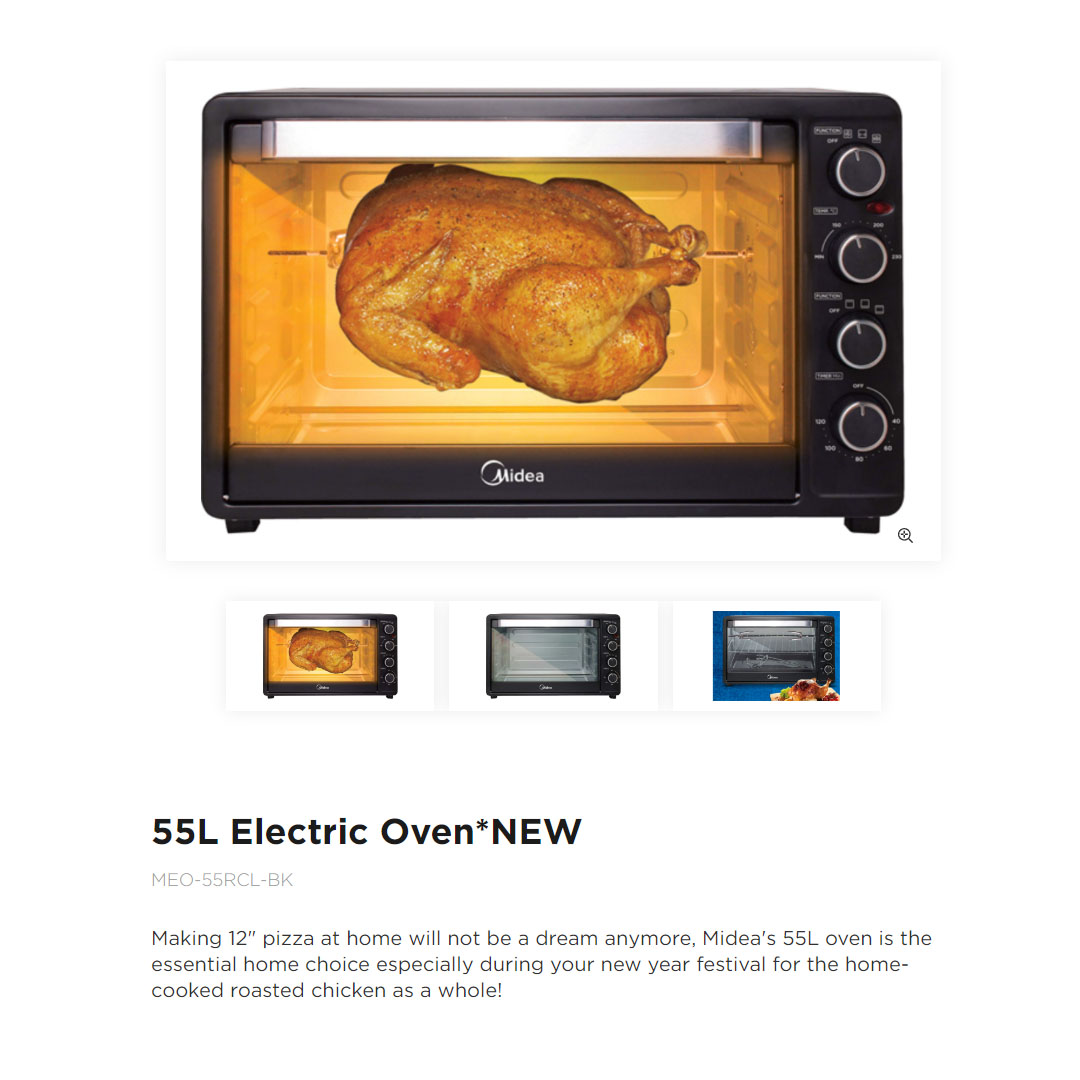 Midea 55L Electric Oven MEO-55RCL-BK | Inner Light | 120 Mins Timer | Durable Cavity | Hot Air Circulation | Rotisseries and Convection | Electric Oven with 1 Year Warranty