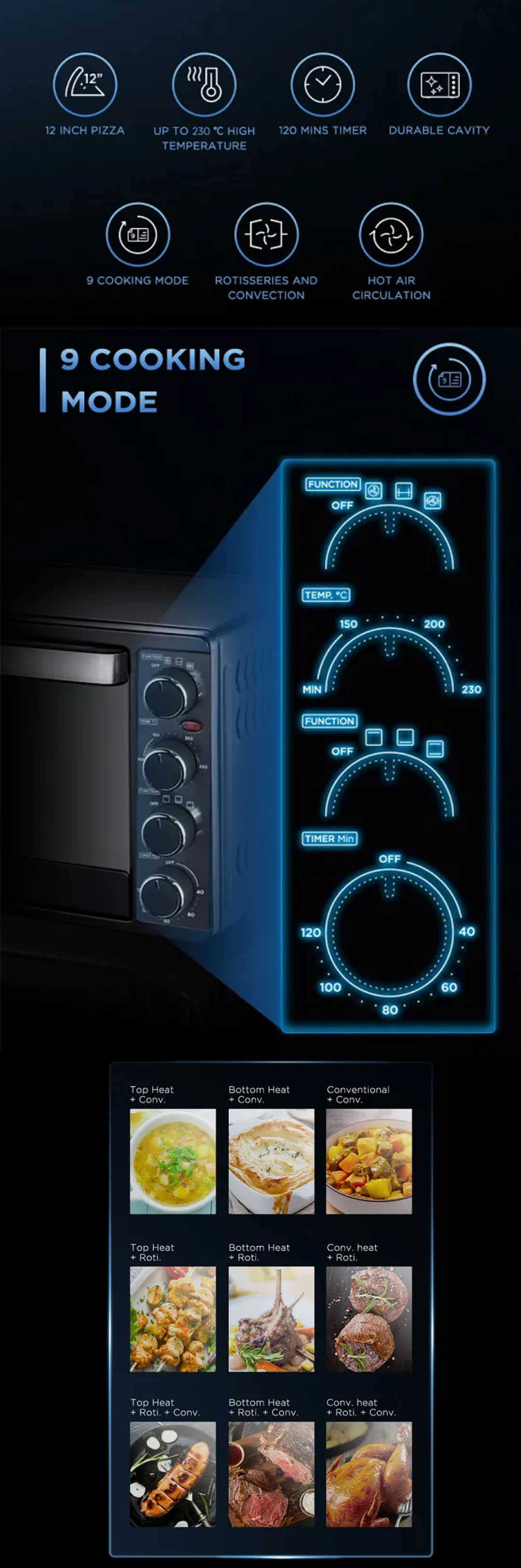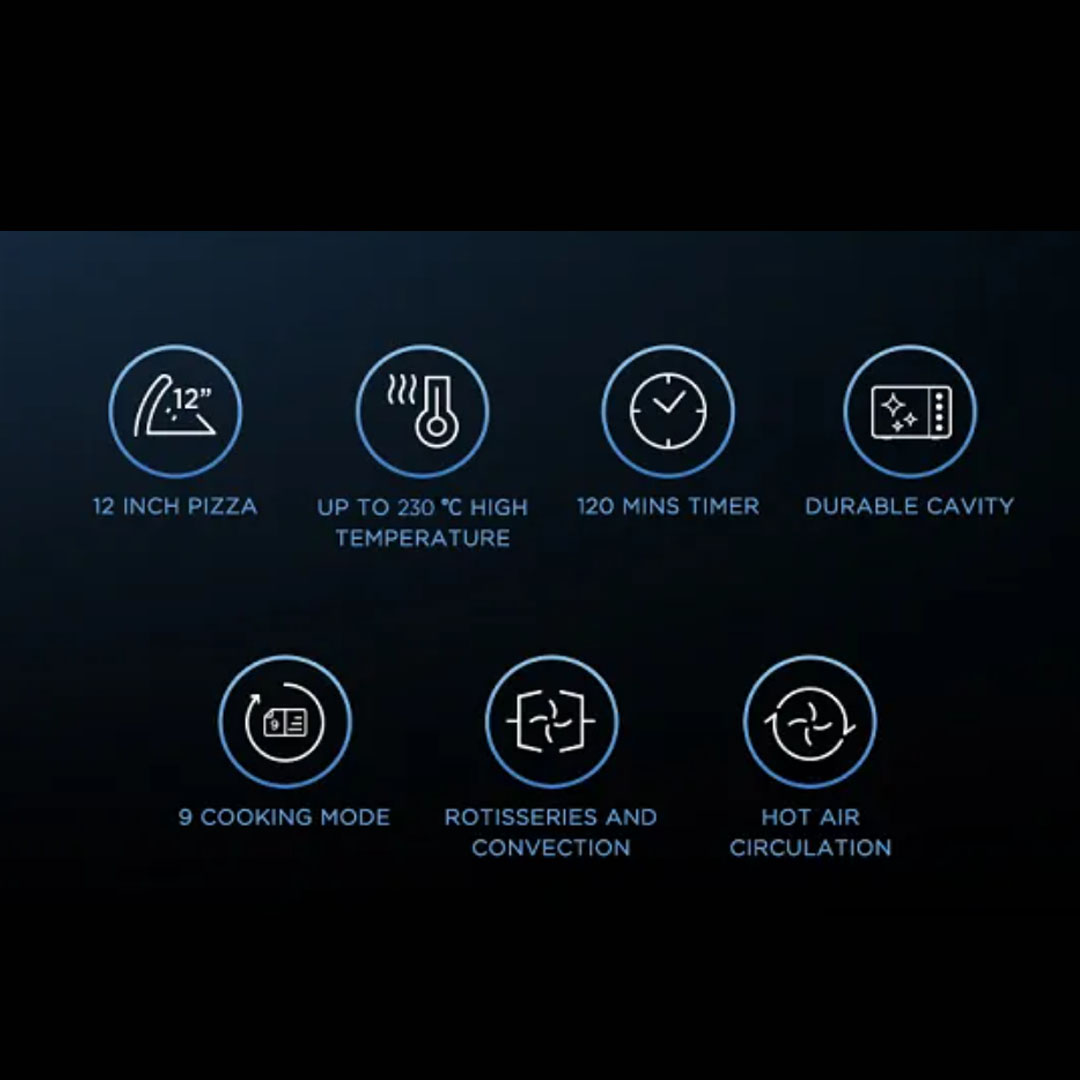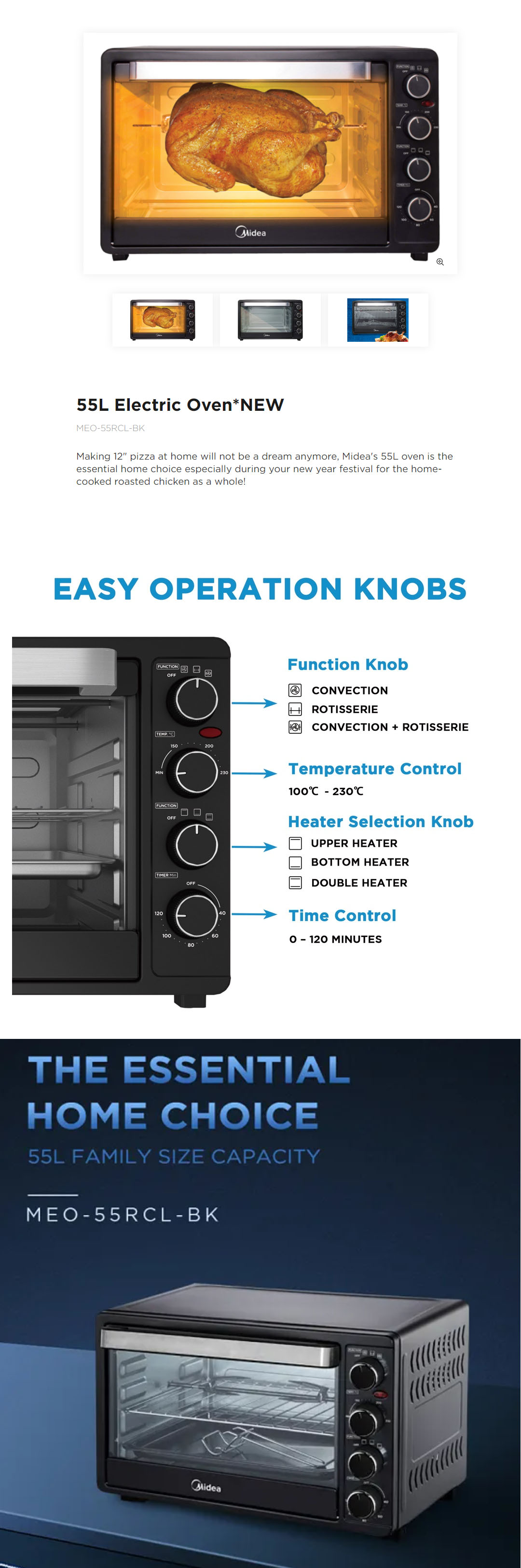 Midea 55L Electric Oven MEO-55RCL-BK | Inner Light | 120 Mins Timer | Durable Cavity | Hot Air Circulation | Rotisseries and Convection | Electric Oven with 1 Year Warranty