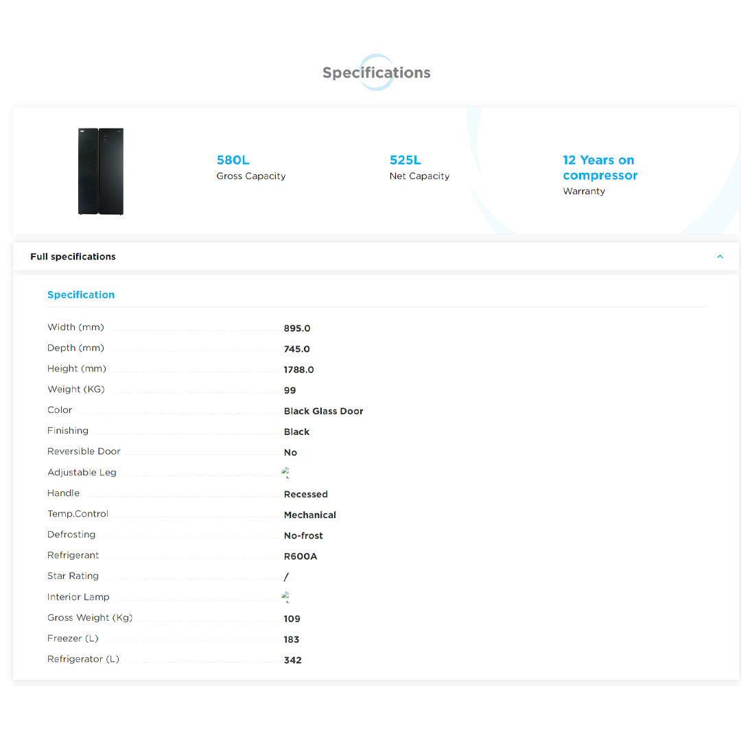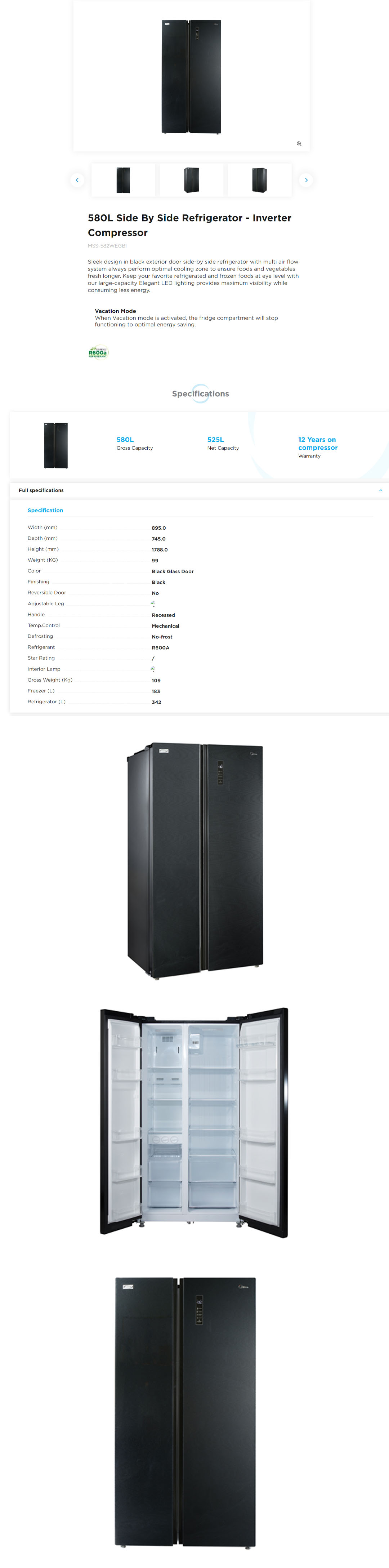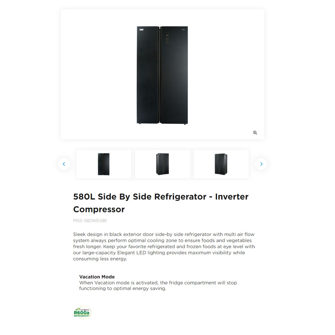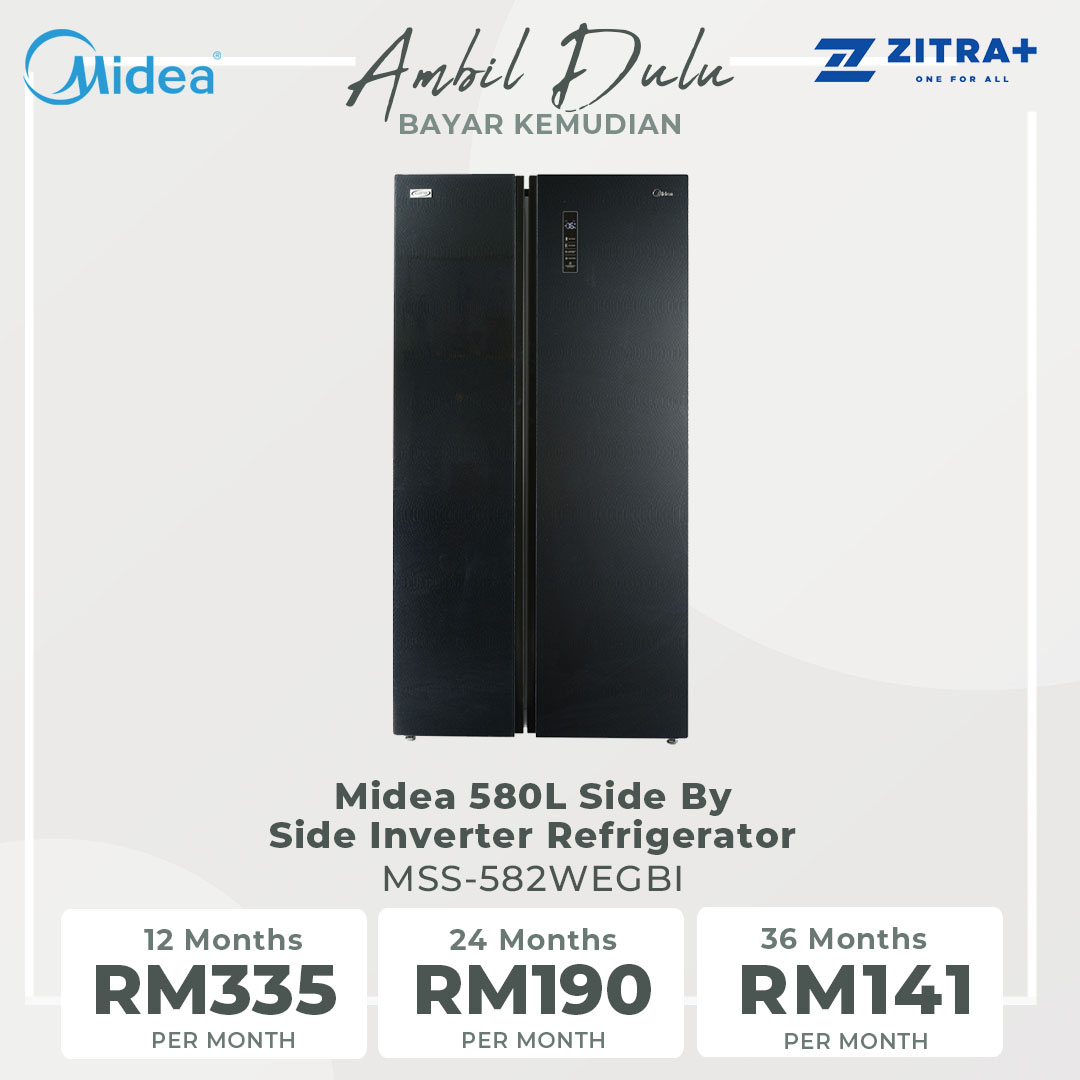 Midea 580L Side By Side Inverter Refrigerator MSS-582WEGBI | Inverter Compressor | Multi Air Flow System | Super Cooling and Super Freezing Function | Refrigerator with 1 Year Warranty