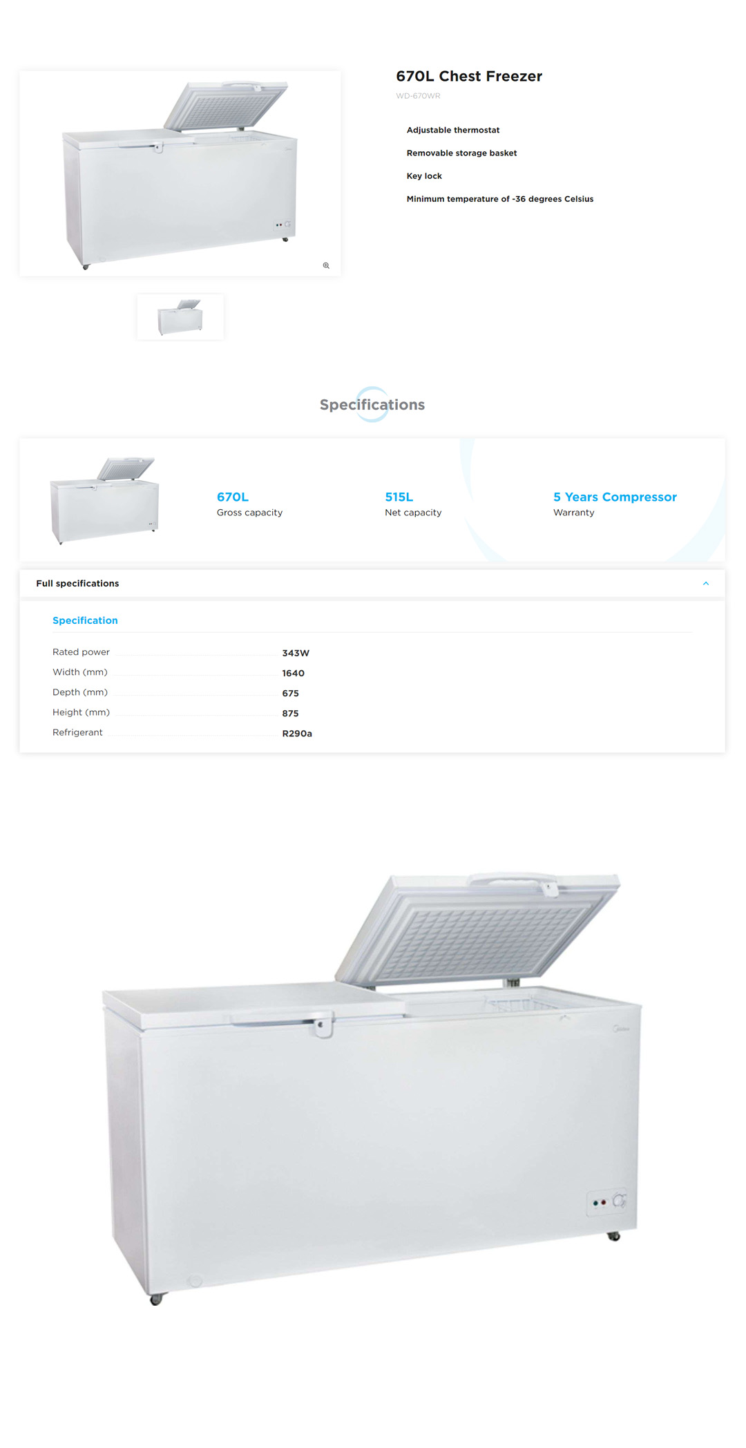 Midea 670L Chest Freezer WD-670WR | Removable Gasket | Rollers for Easy Movement | Silent Hinges | Refrigerator with 1 Year Warranty