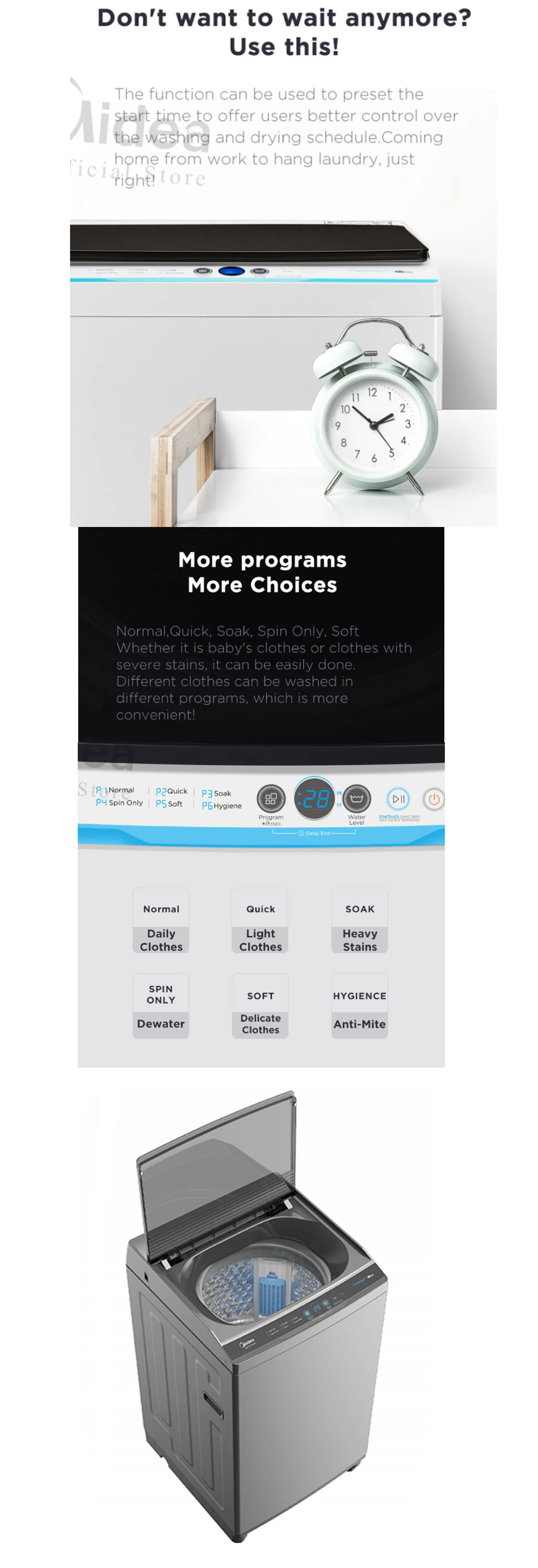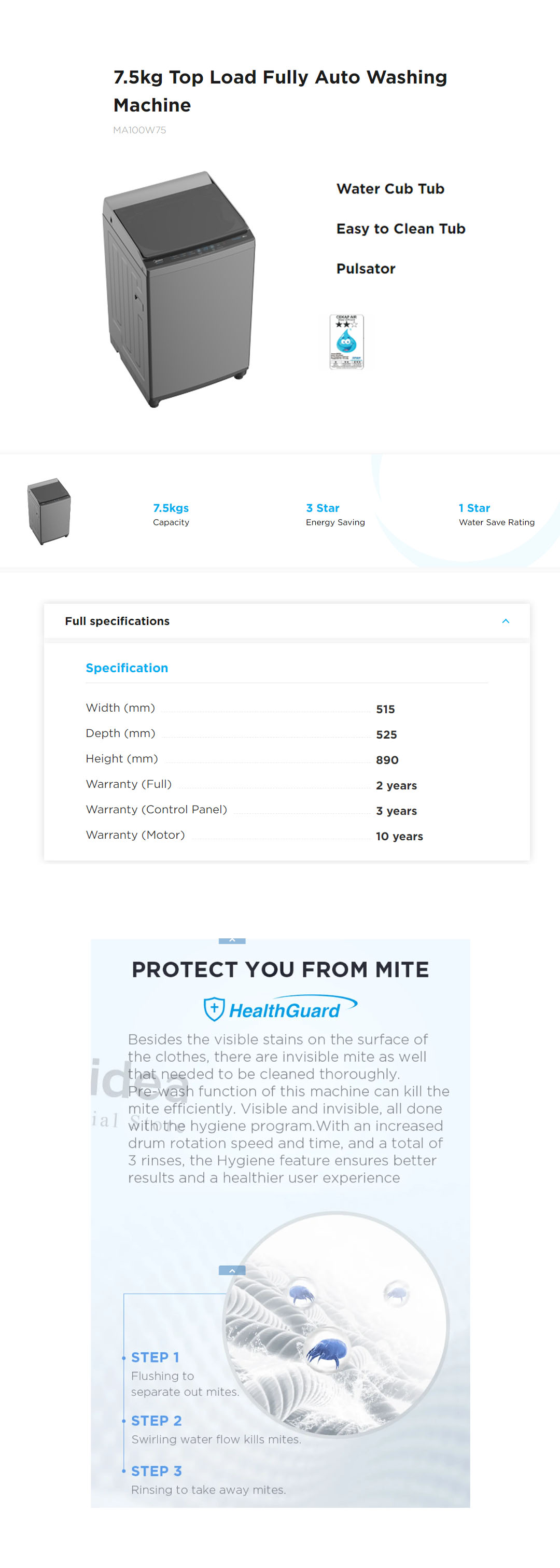 Midea 7.5KG Top Load Washing Machine MA100W75 | Lunar Dial | 15' Quick Wash | One-Touch Smart Wash | Auto Clean | Hygiene | Lint Filter | Washing Machine with 2 Year Warranty