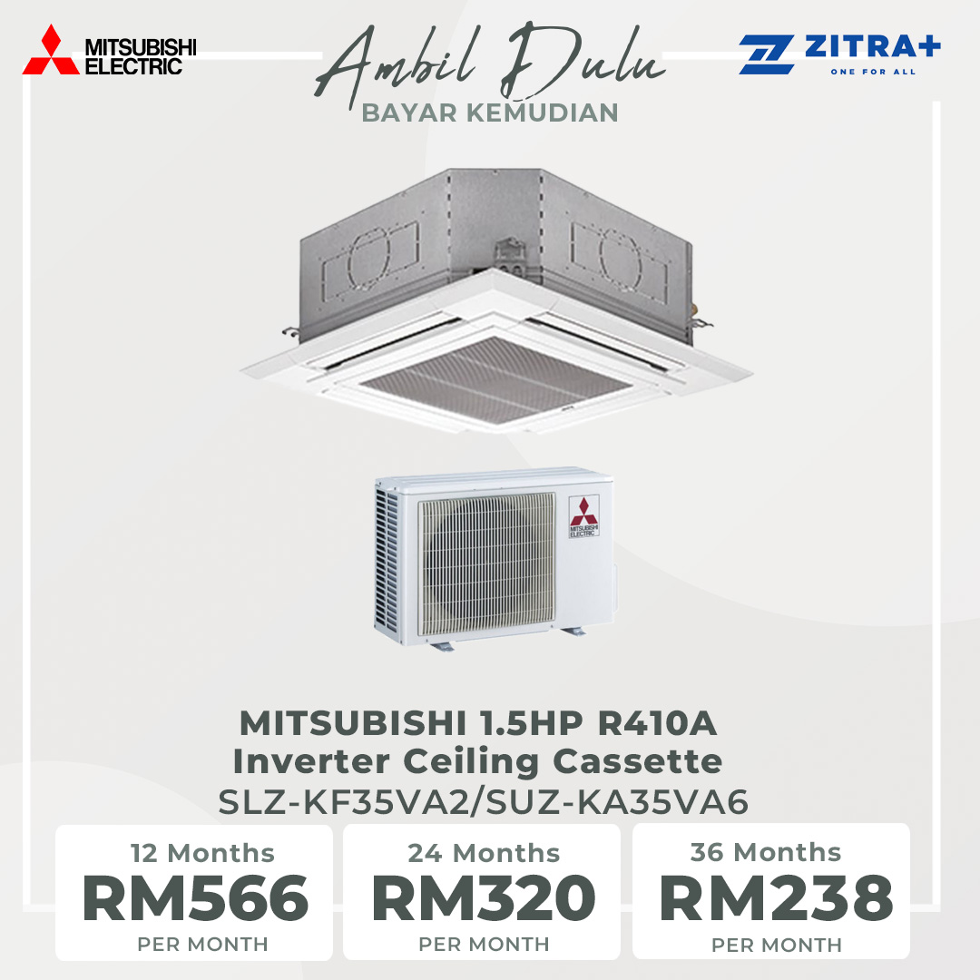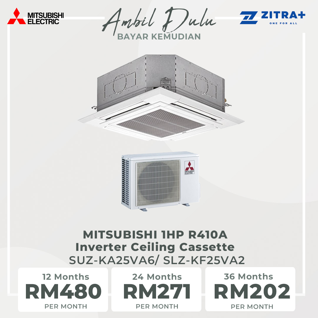 MITSUBISHI 1HP R410A Inverter Ceiling Cassette | Auto Swing | Smudge Free | Quiet Operation | Auto Restart | Automatic Vane Shutter | Air Conditioner with 1 Year Warranty